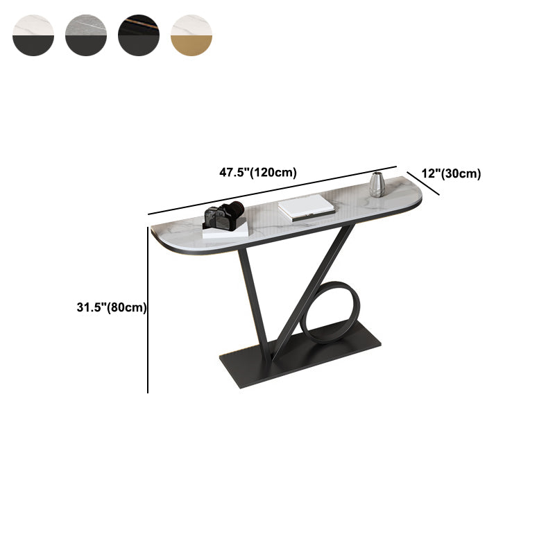Tavolino con console top con mezza luna pietra con tavola di accento di base del piedistallo di ferro