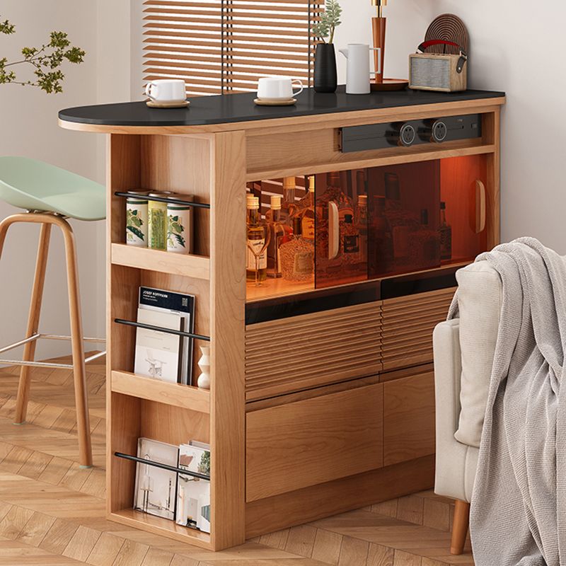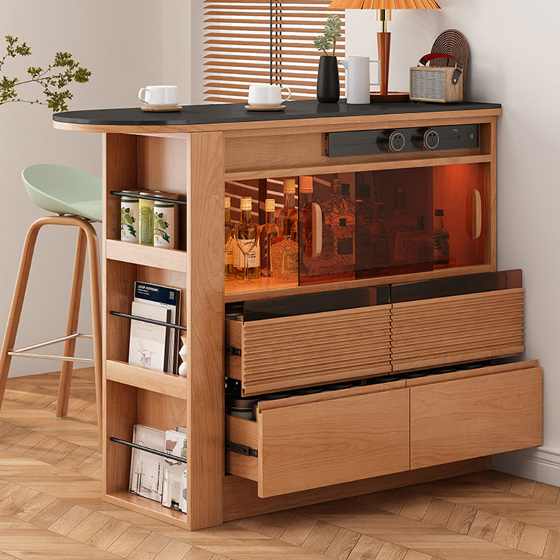Tavolo da bar in forma top in pietra con base in legno di pino marrone per soggiorno