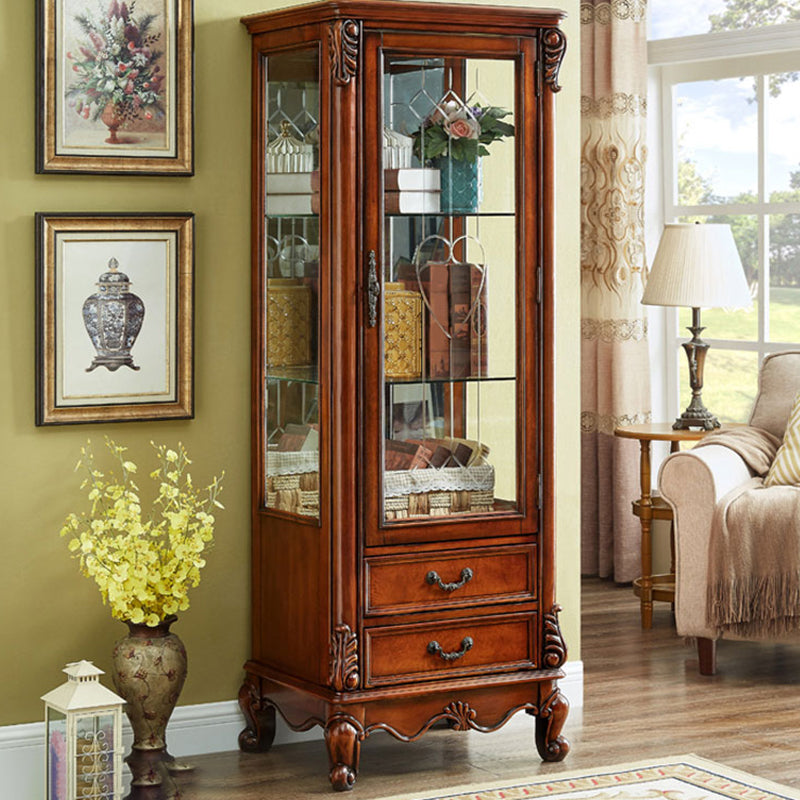 Traditional Glass Doors Curio Cabinet Rubber Wood Display Cabinet for Home Clearhalo 'Display & China Cabinets' 'display_china_cabinets' 'furn' 'furn_display_china_cabinets' 'Furniture' 'Kitchen & Dining Furniture' 1200x1200_660516db-aa68-4d1d-83e4-3f7c62000957