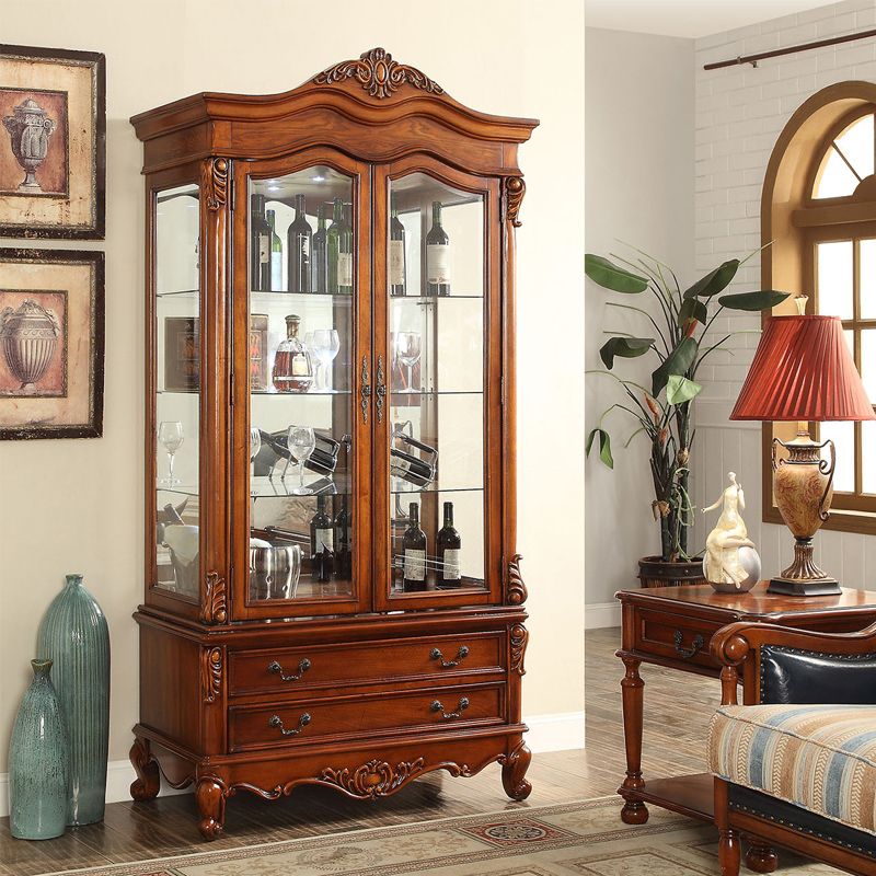 Cabine di vetro tradizionali Curio Curio Armadio in legno di gomma per sala da pranzo