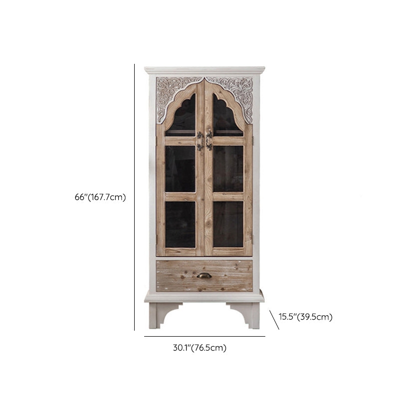 Traditional Pine Curio Cabinet Glass Doors Display Stand with Doors