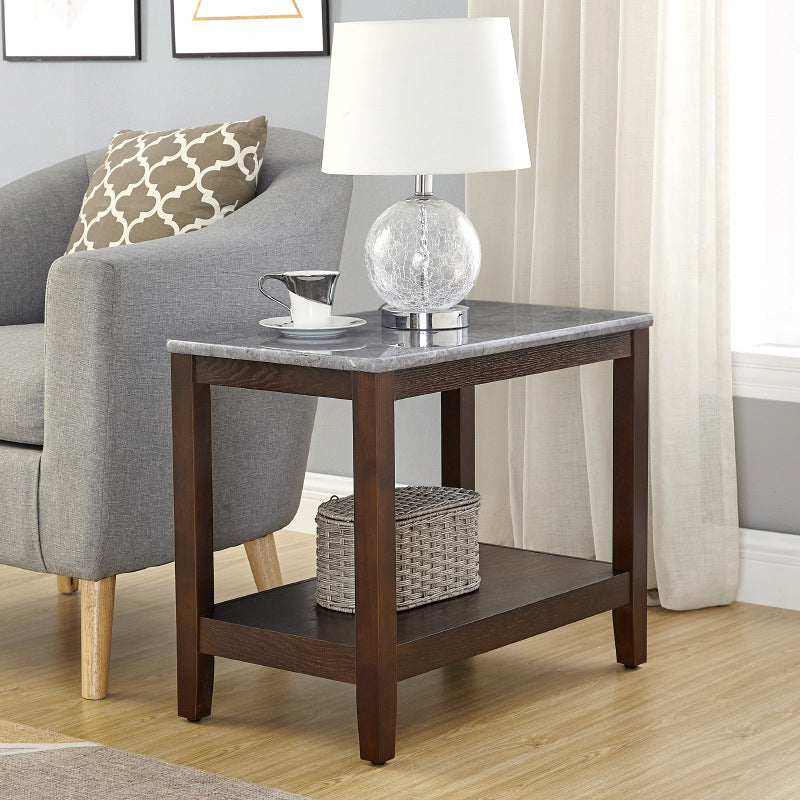 Tavolo laterale rettangolare tradizionale tavolo da estremità in legno a doppio livello per soggiorno