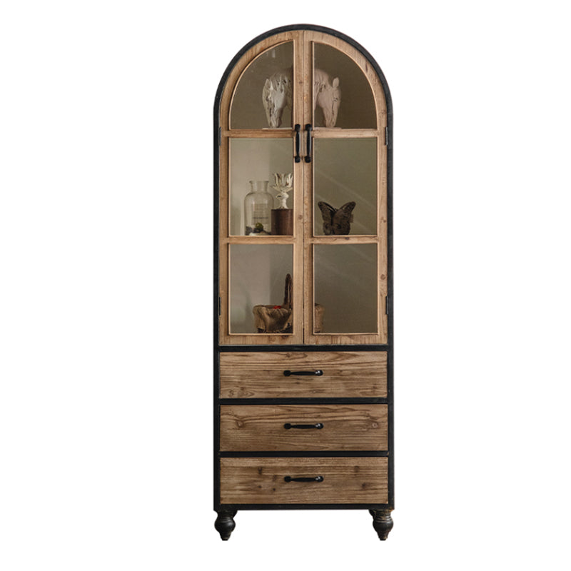 Tradizionale in legno in legno in legno in vetro armadio con le porte per la camera da letto