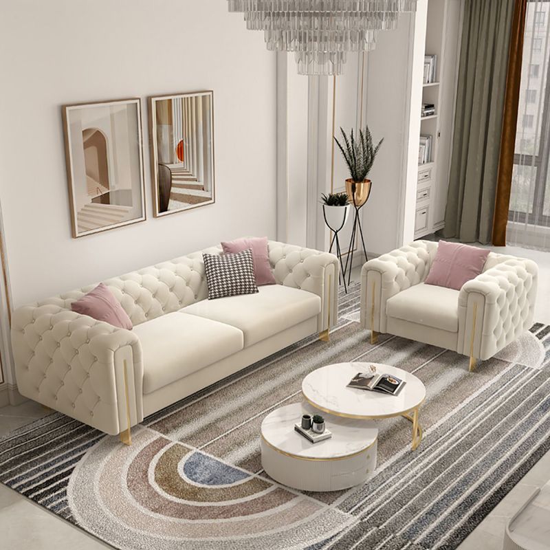 Divano a braccio di smoking divano bianco contemporaneo con back-back trapuntato