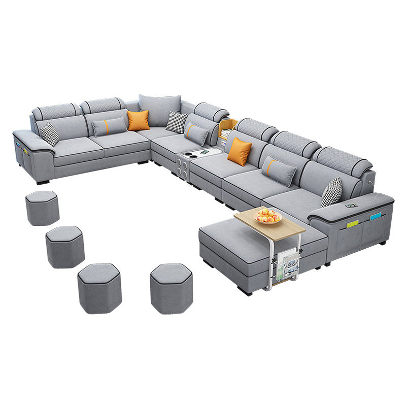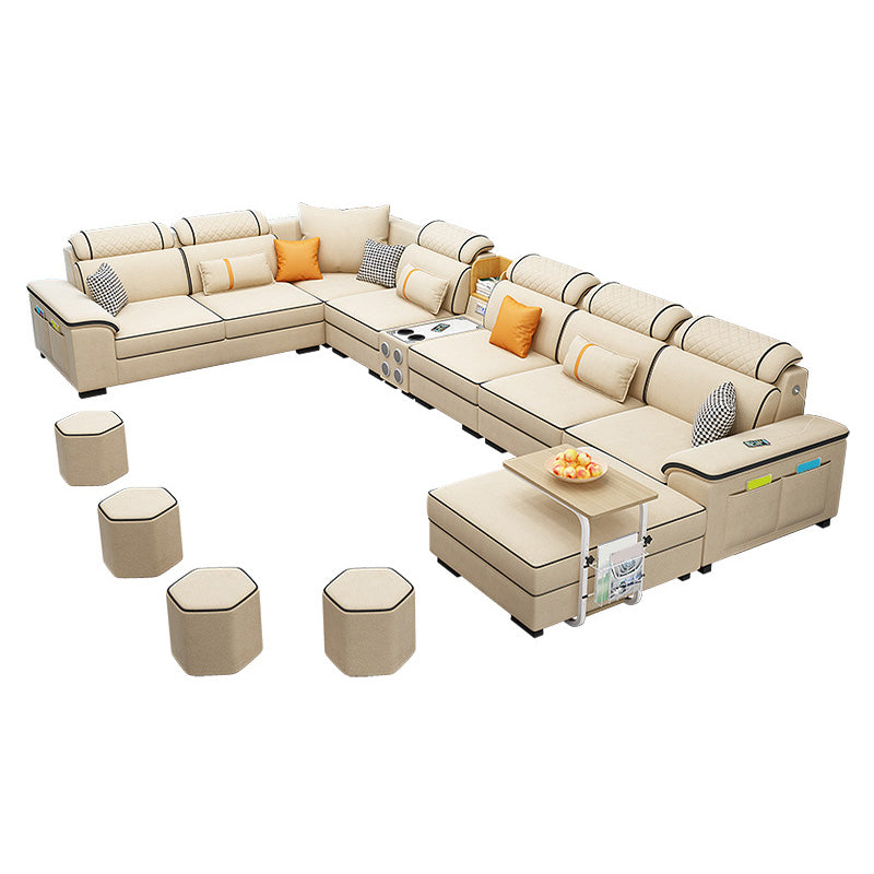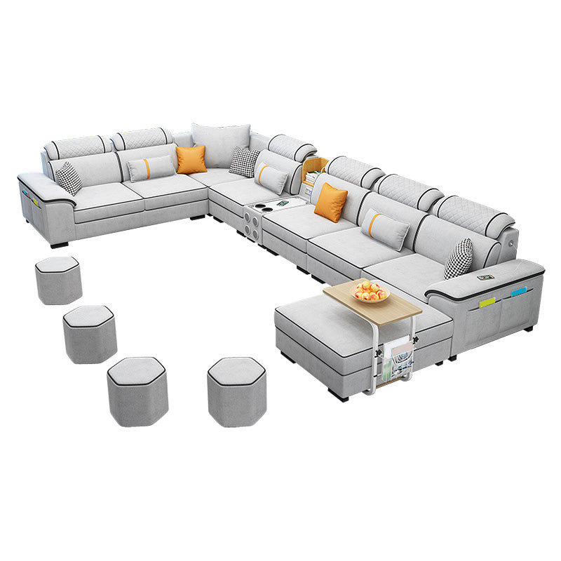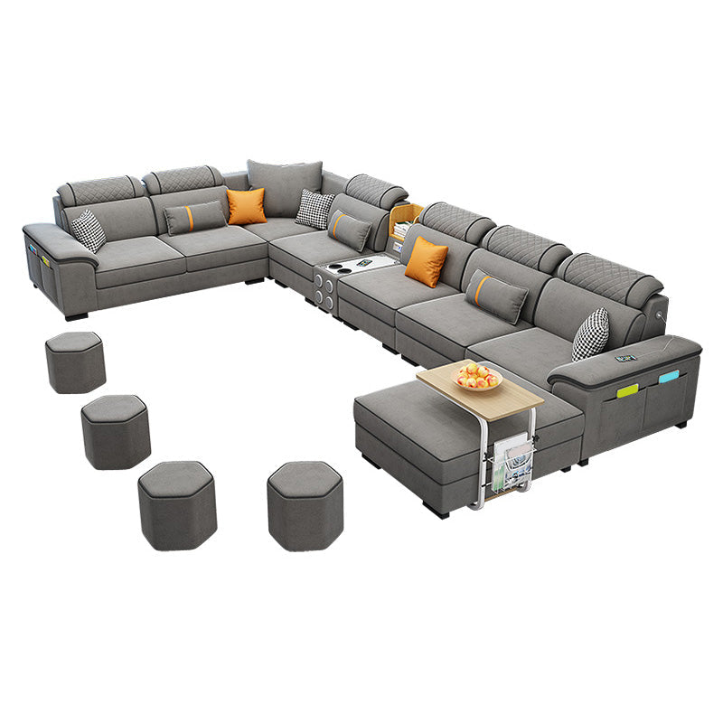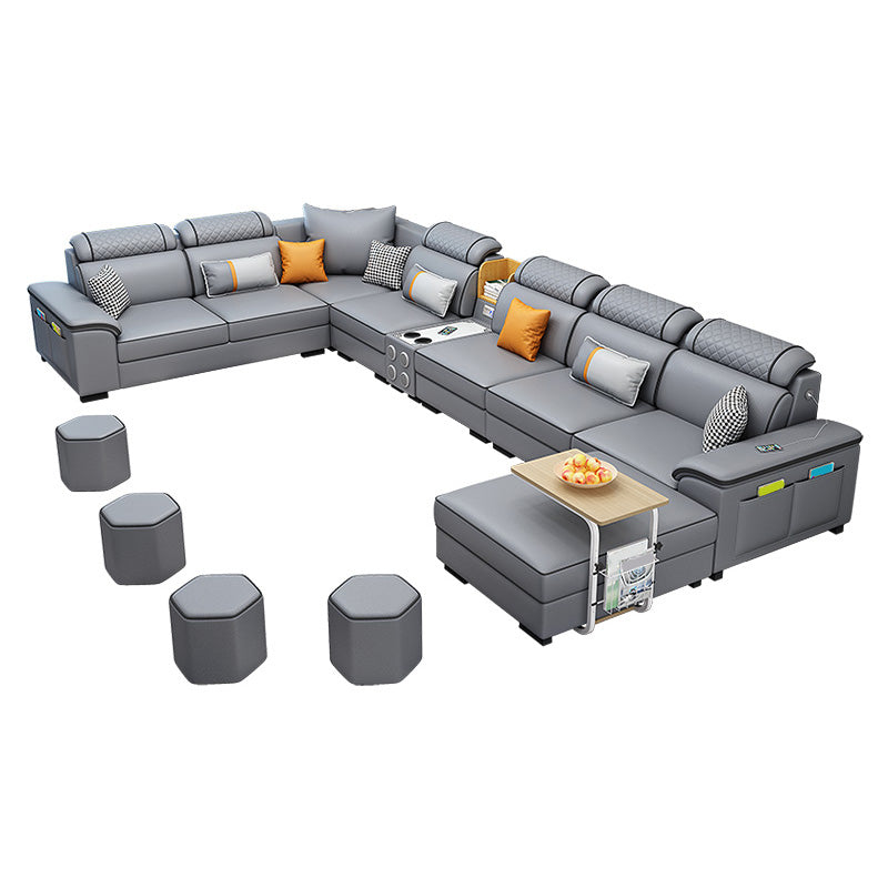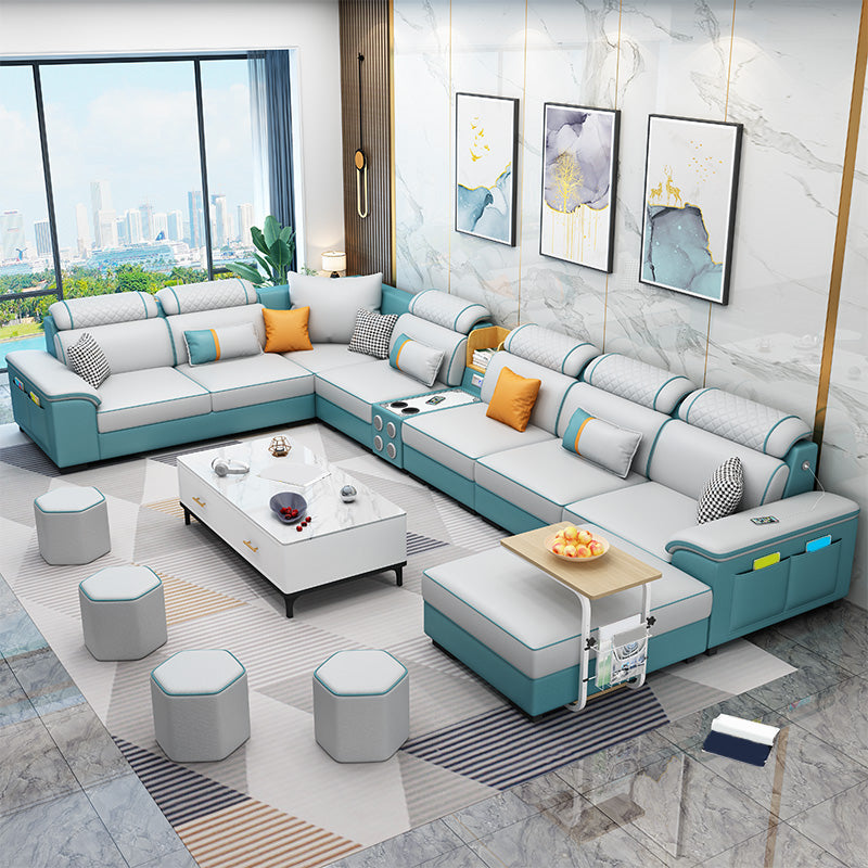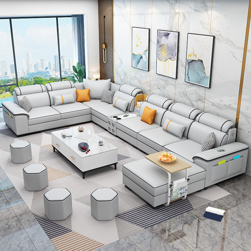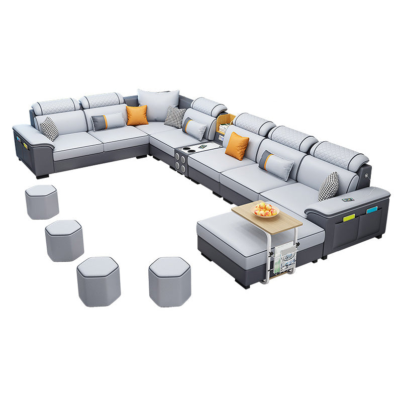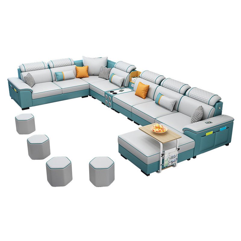 Sezioni mobili modulari in velluto a forma di U e in pelle finta per 7 persone