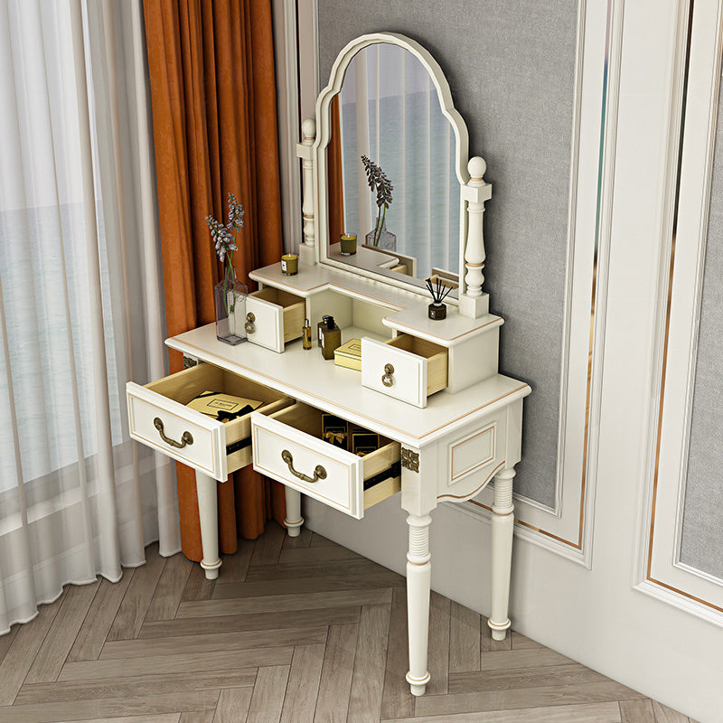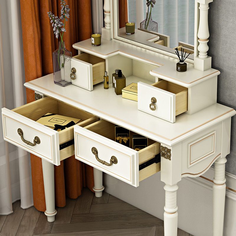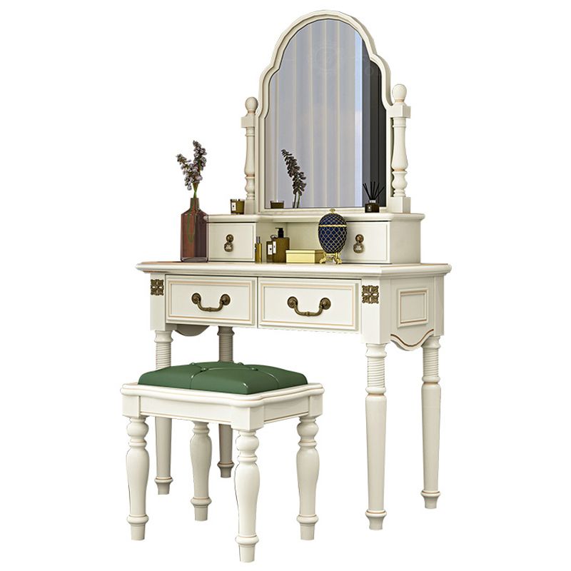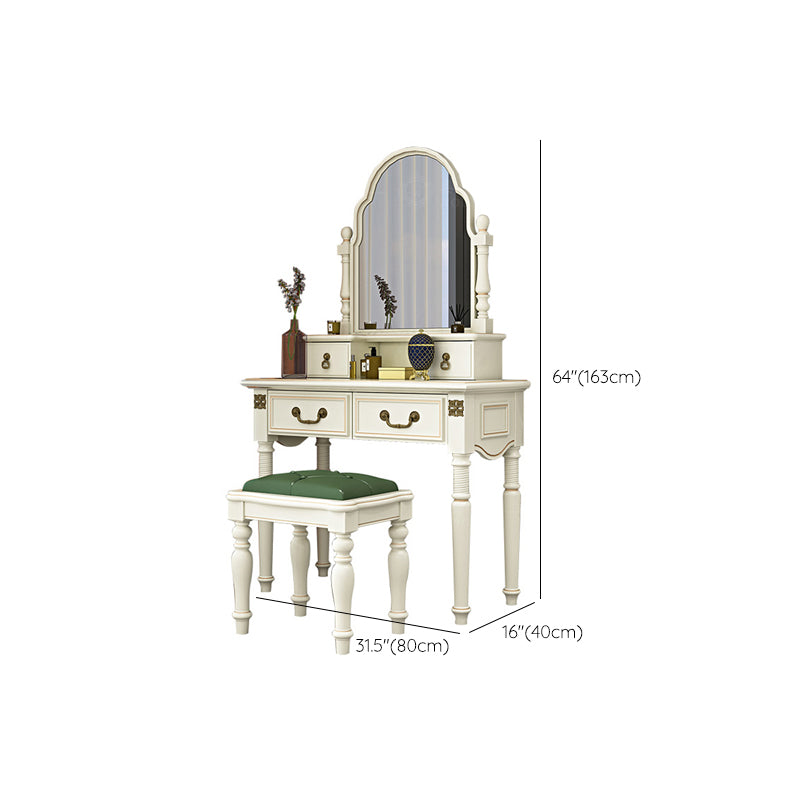 Sgabello da toeletta per trucco per vanità in legno massiccio vittoriano con specchio in bianco