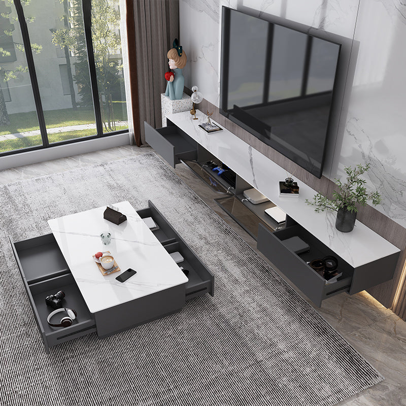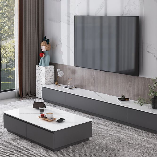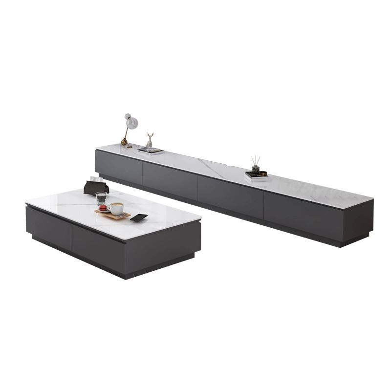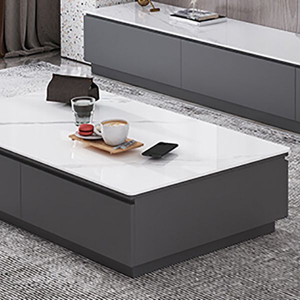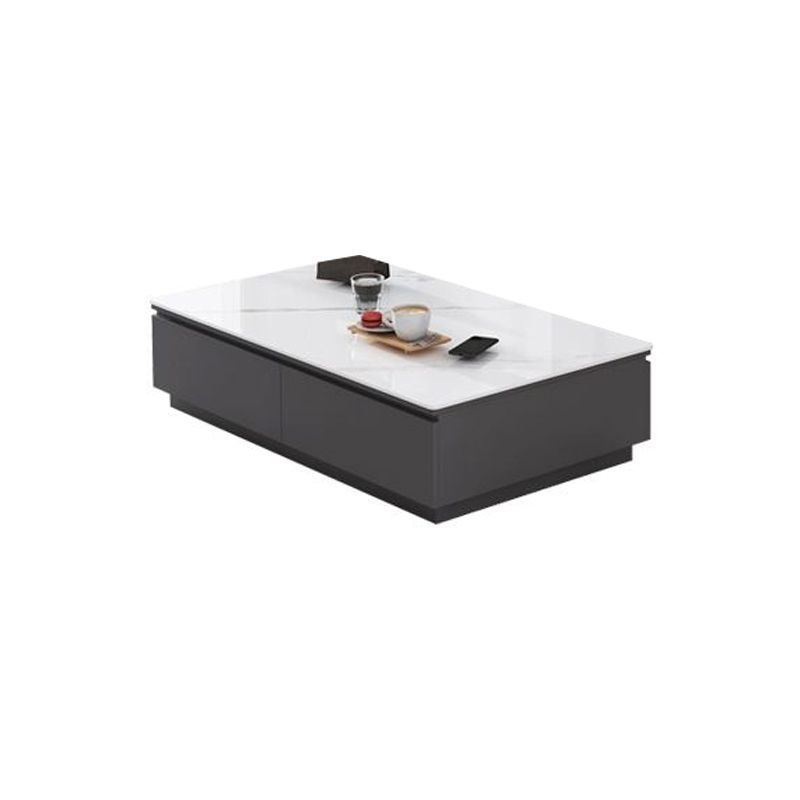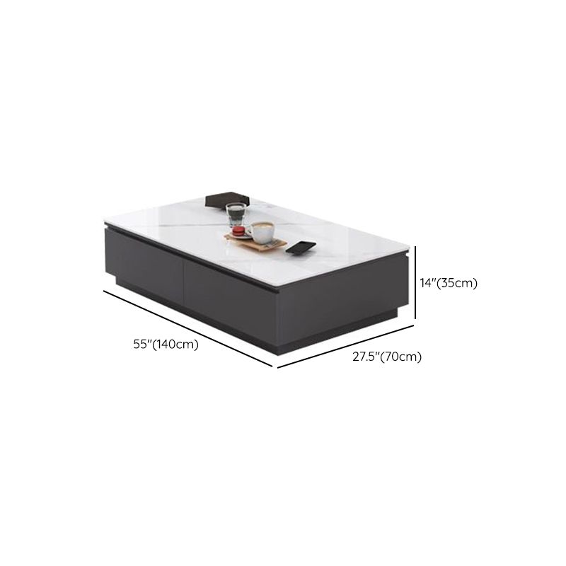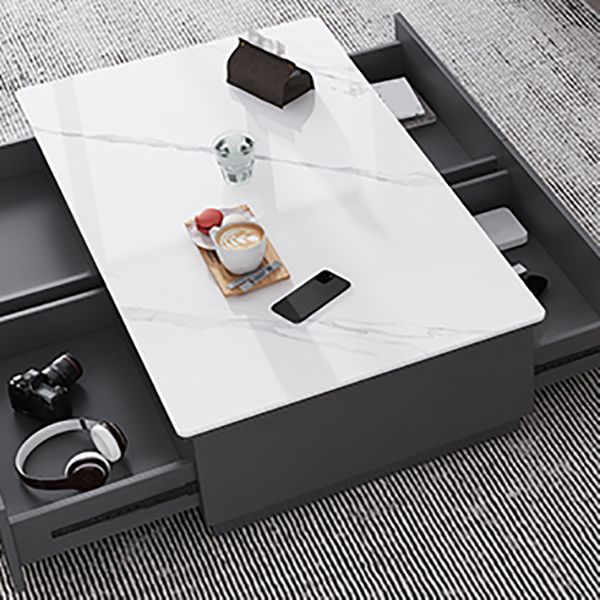 Tavolino da cocktail al caffè rettangolare in ardesia bianca con archiviazione
