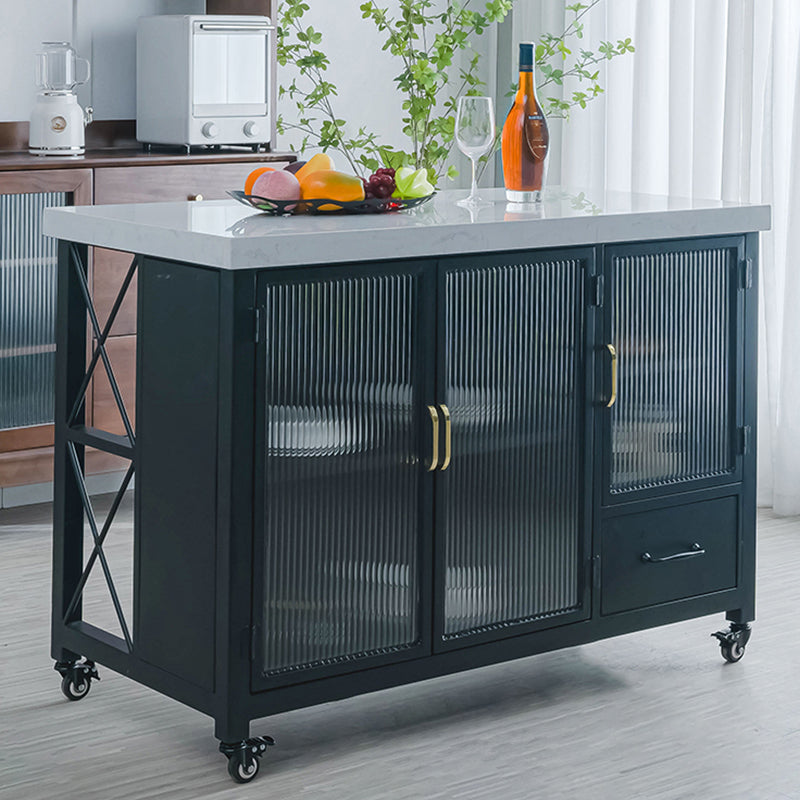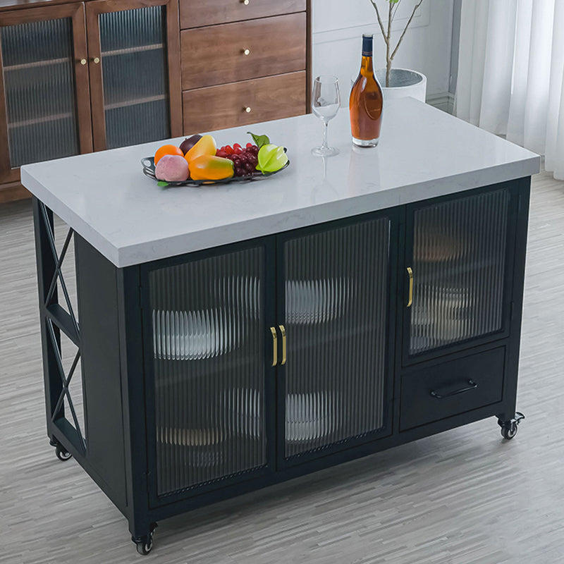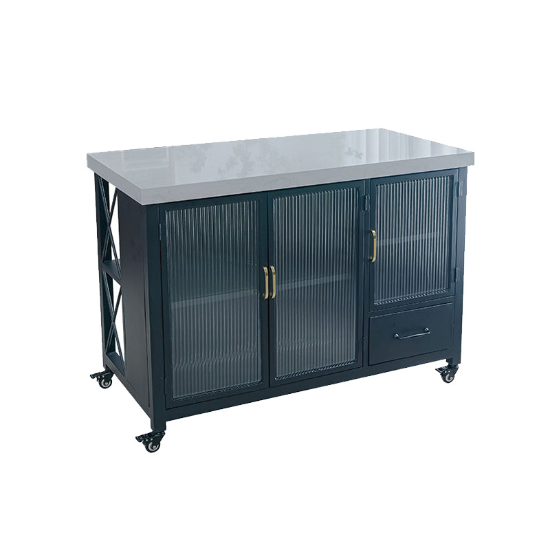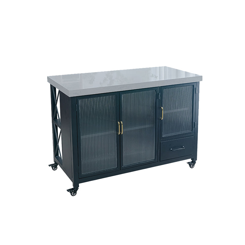 Carrello da cucina in falda in finto bianco con mobile in magazzino nero