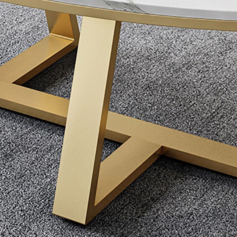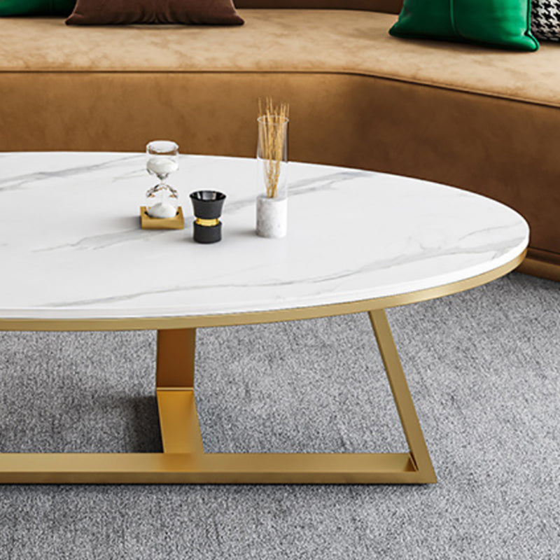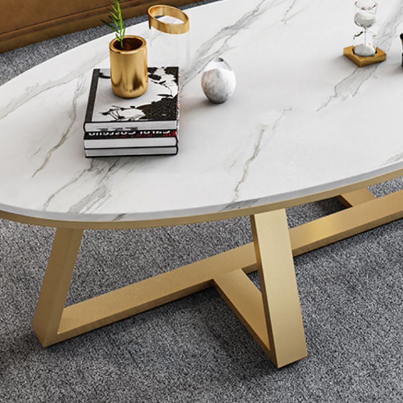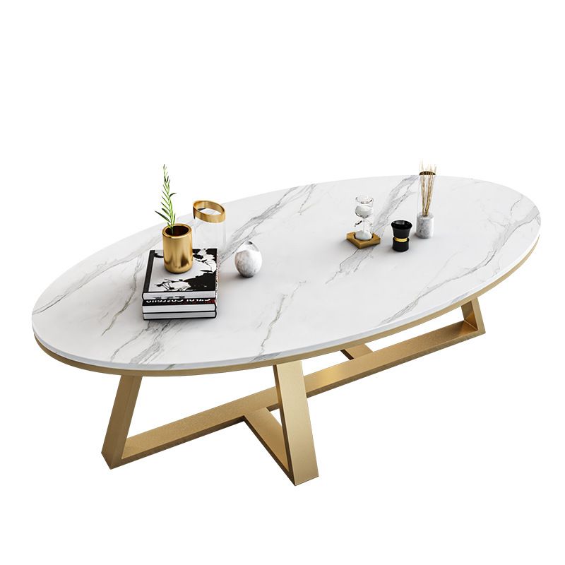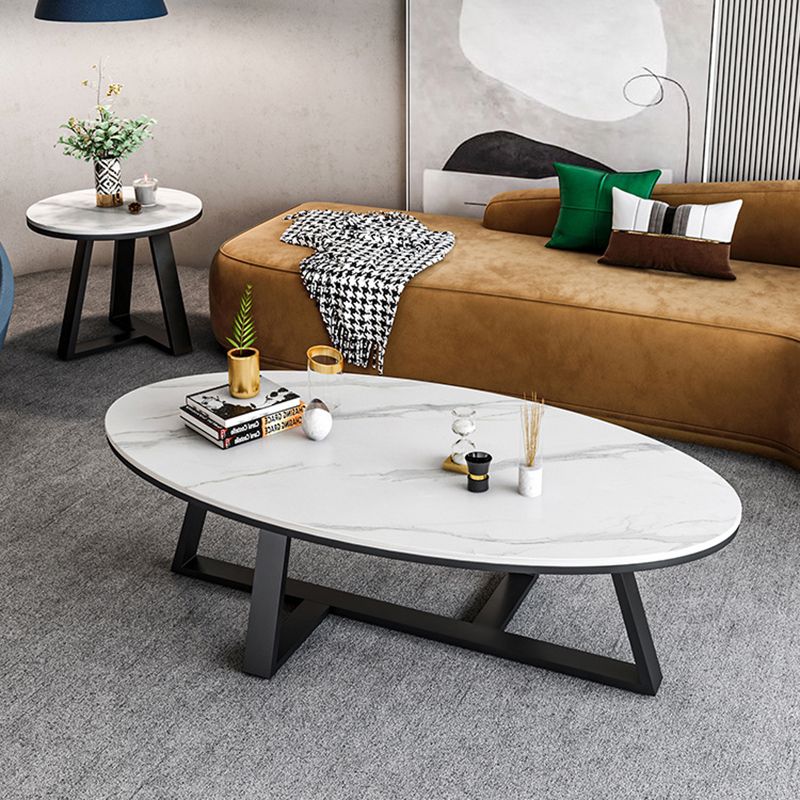 Tavolino da caffè in pietra ovale bianca con tavolino da cocktail a base di ferro