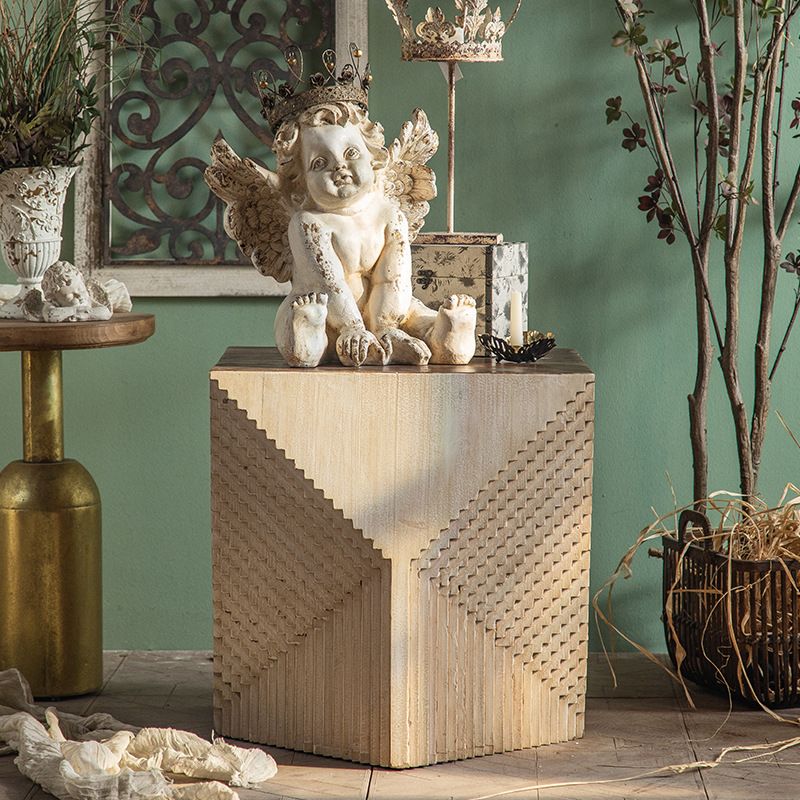 Tavolo laterale rustico in legno da 23,62 pollici Tavolino naturale in finitura in difficoltà