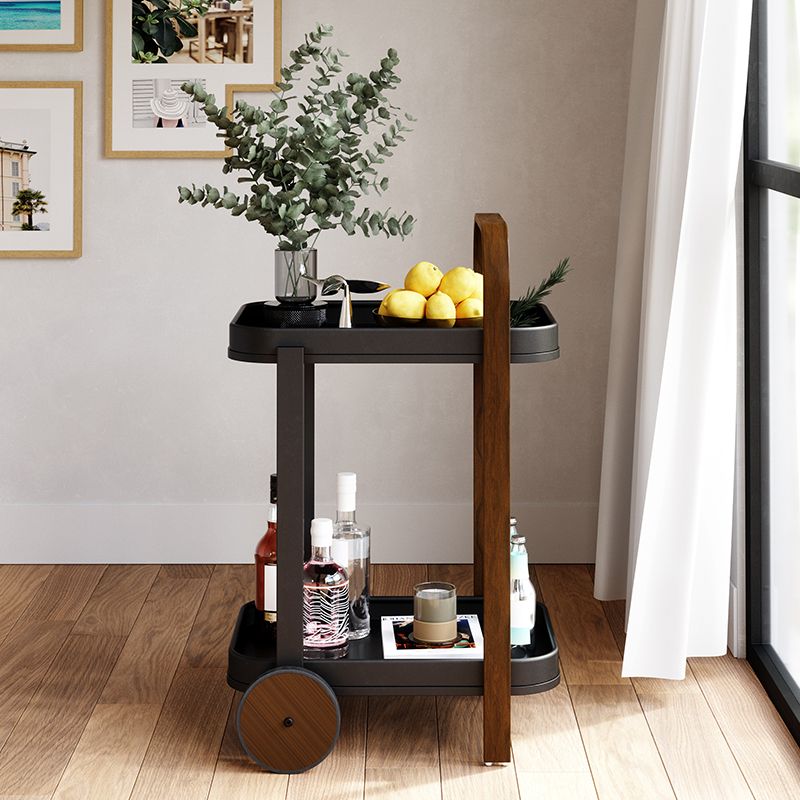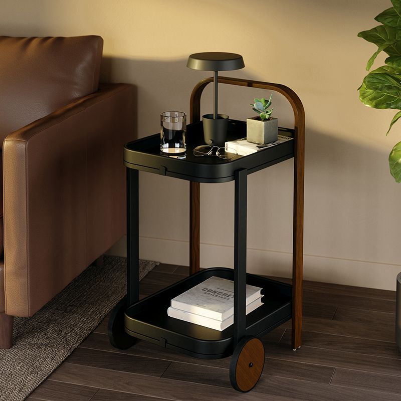 Tavolo laterale superiore del vassoio rettangolo in legno Tavolo da 31,5 pollici con ruota e scaffale