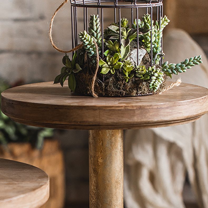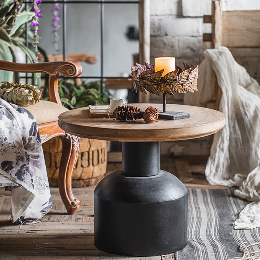 Tavolino in legno tondo rotondo superiore 19,7 "/25,6" tavolino in metallo alto