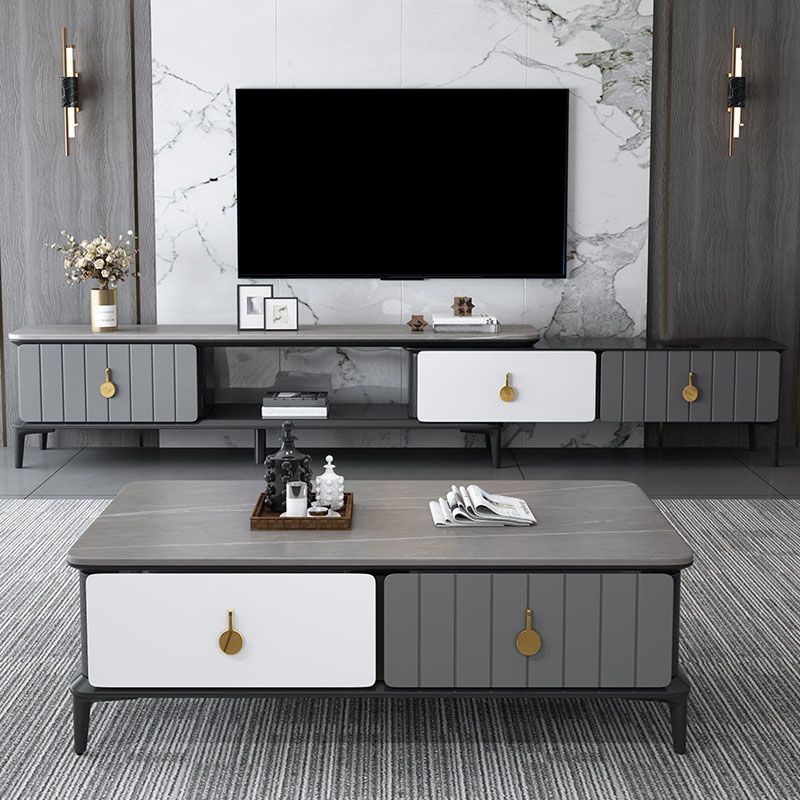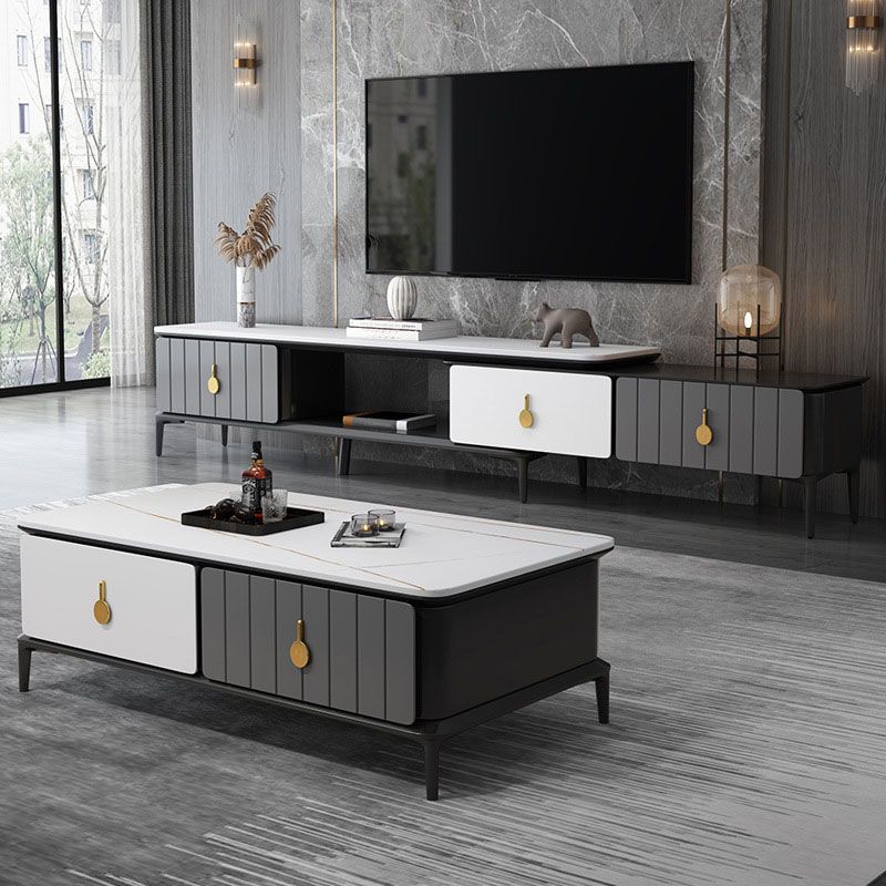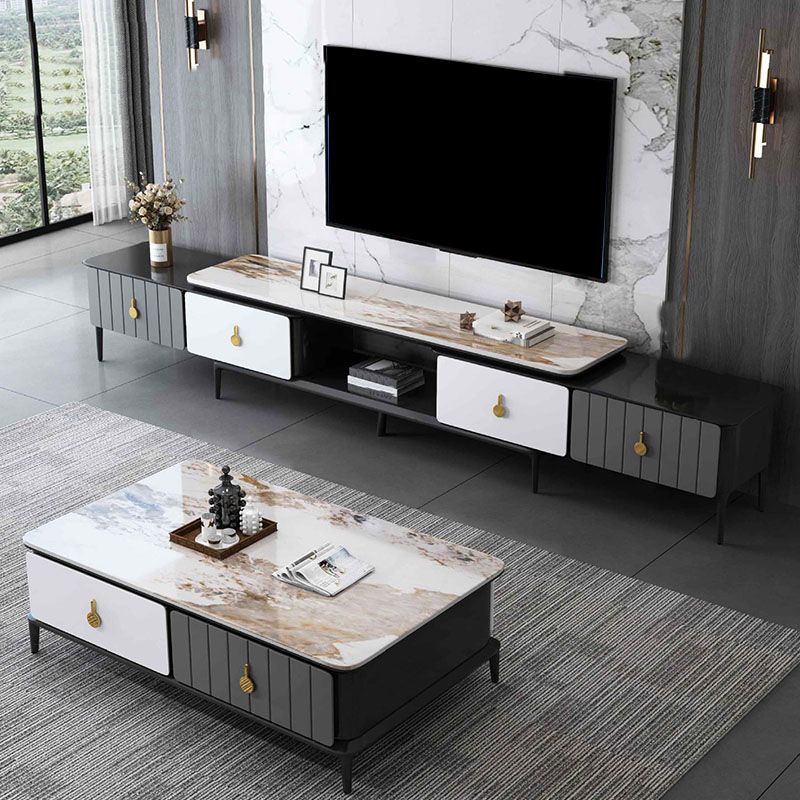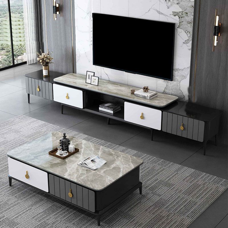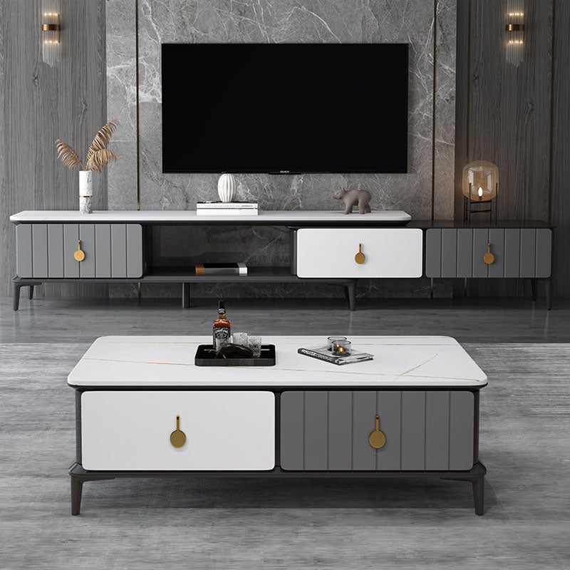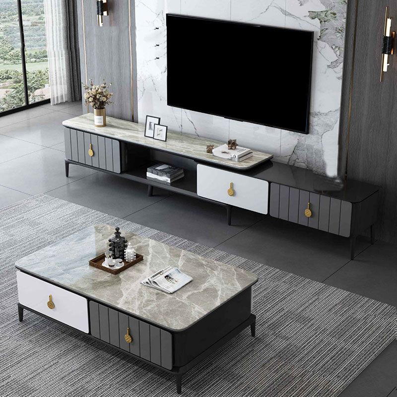 16.5 "3/4の引き出し付きテレビ用のコンテンポラリーテレビコンソールストーントップテレビスタンド