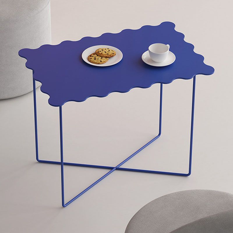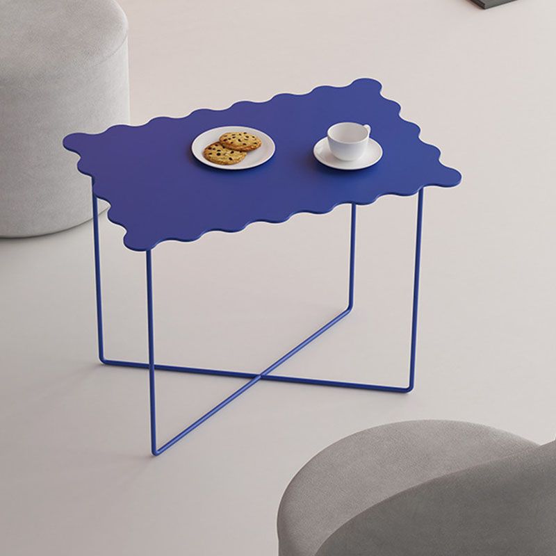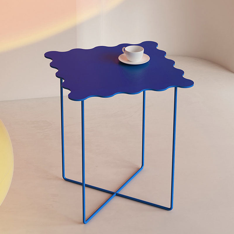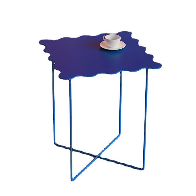 19.68 "背の高いクロス脚エンドテーブルメタリックブルーのアクセントサイドテーブル