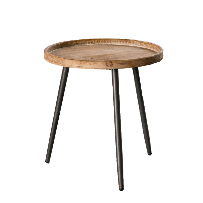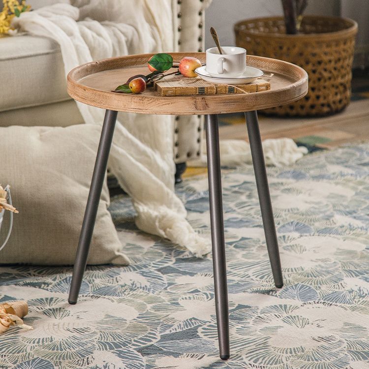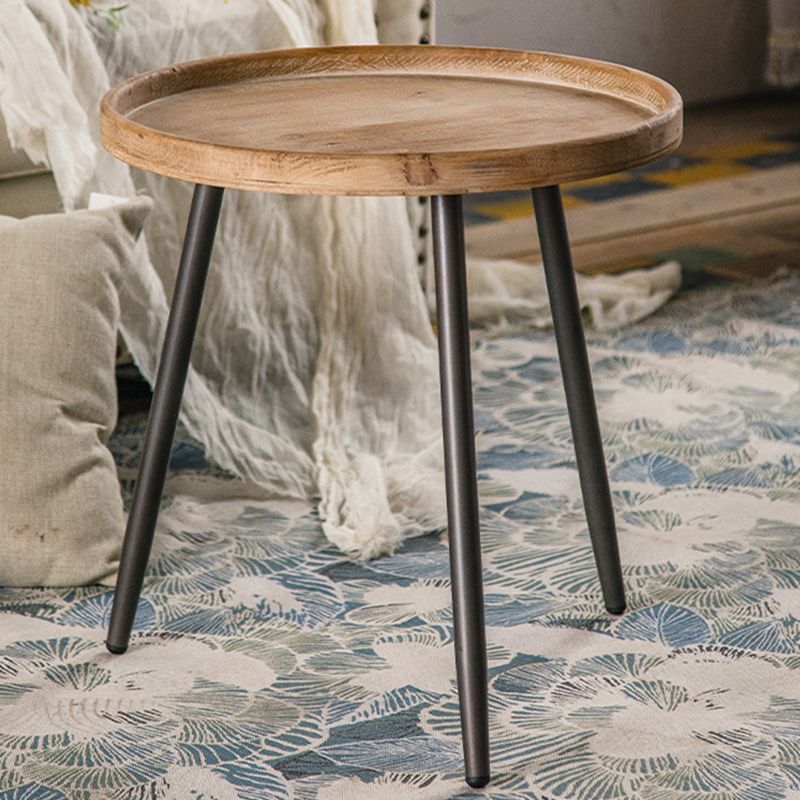 19.68 "背の高いソリッドウッドラウンドトレイトップエンドテーブル鉄3脚サイドテーブル