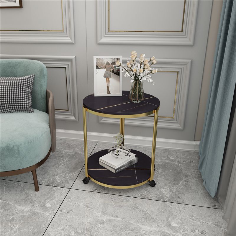 21.65 "スレートラウンドサイドエンドテーブル鉄3脚サイドテーブル付き棚