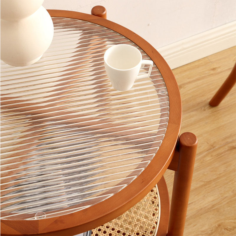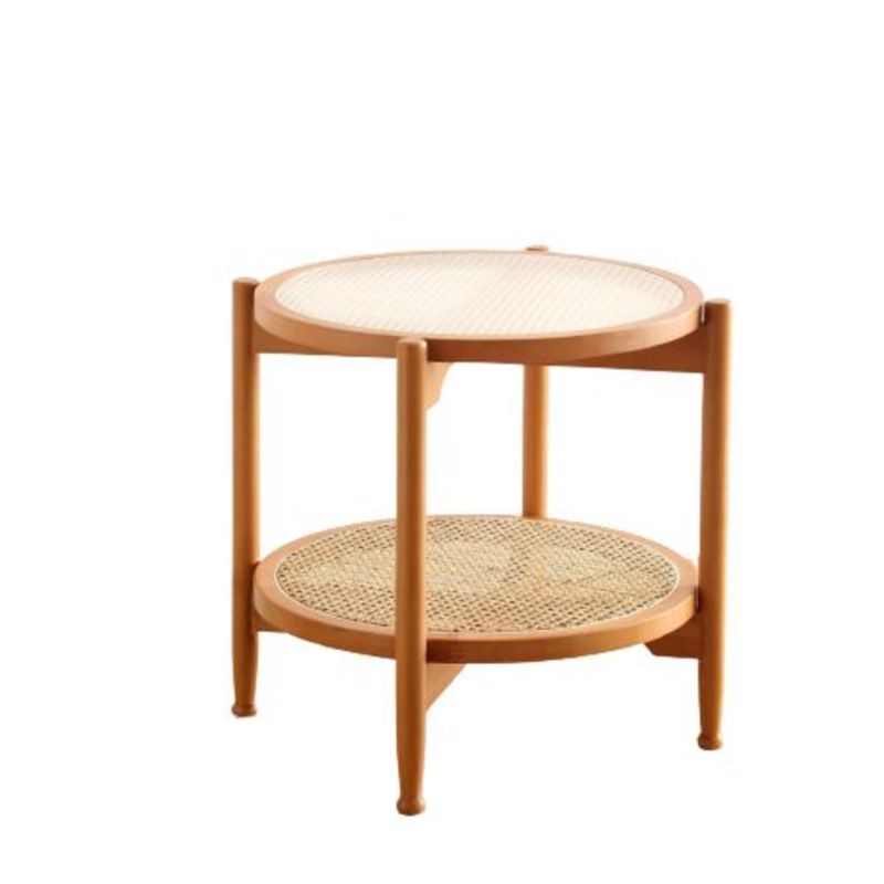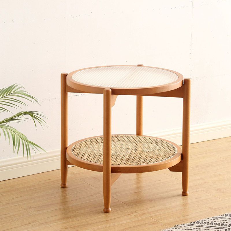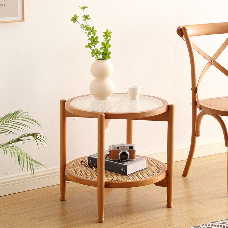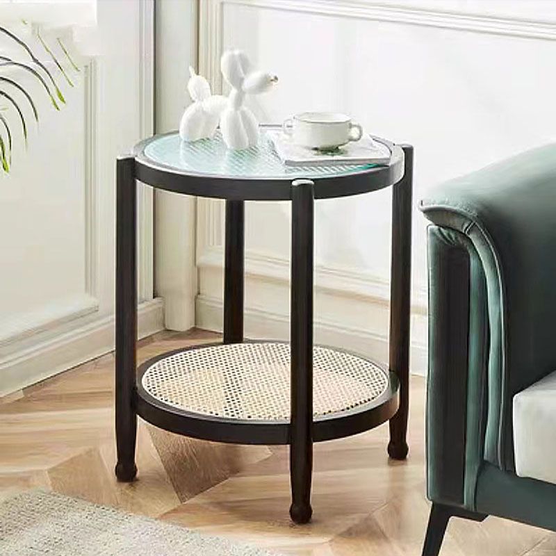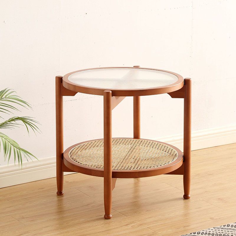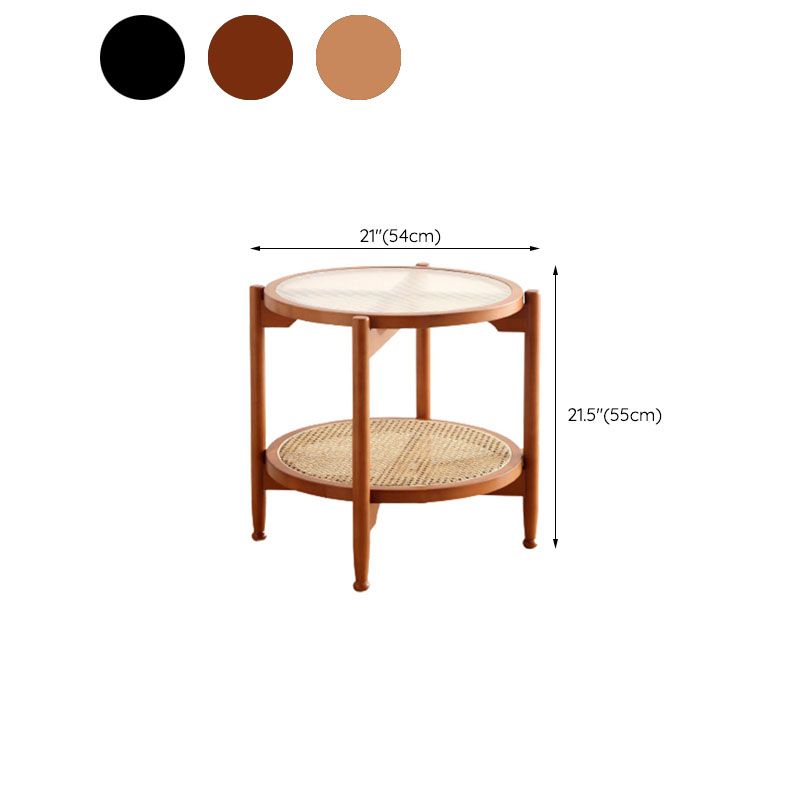 21.65 "高さの丸いガラス上部サイドテーブルウッド4脚エンドテーブル付き棚付き