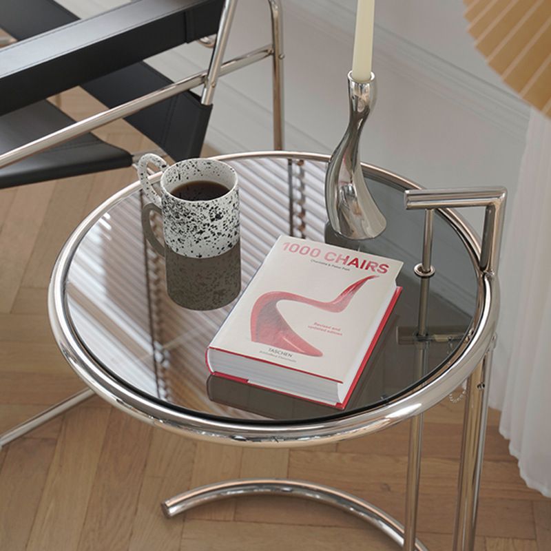 26.4 "丸いガラストップエンドテーブルステンレススチールCサイドテーブル