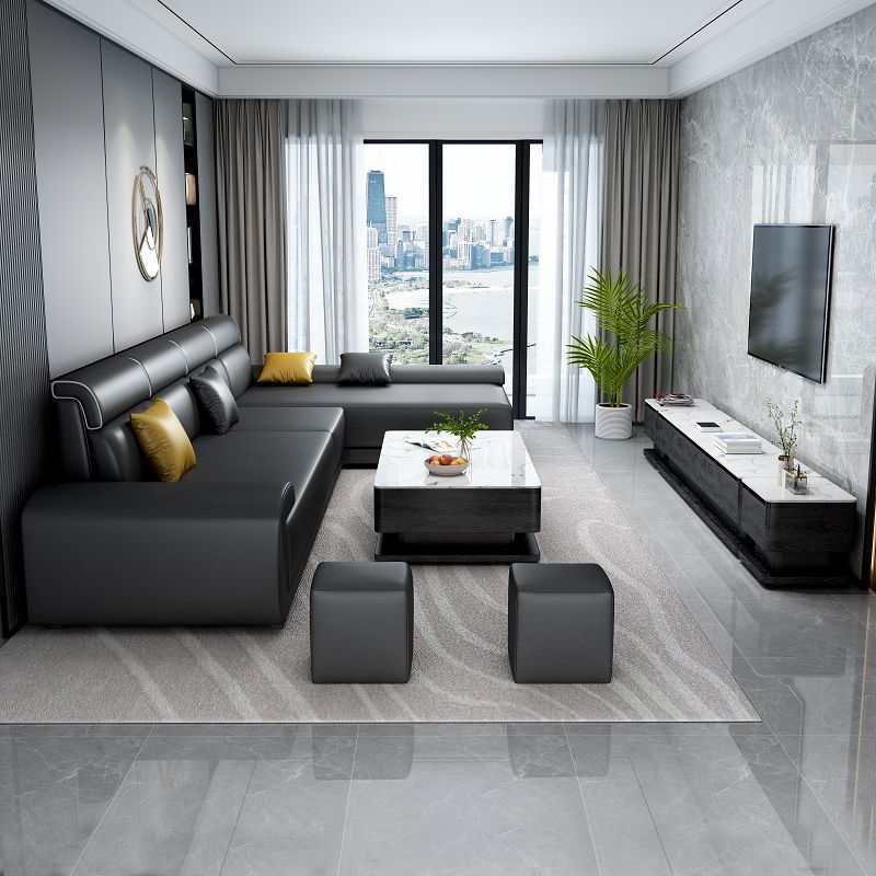 リビングルーム用の4席のコンテンポラリーファブリック/フェイクレザーピロートップアームソファソファ