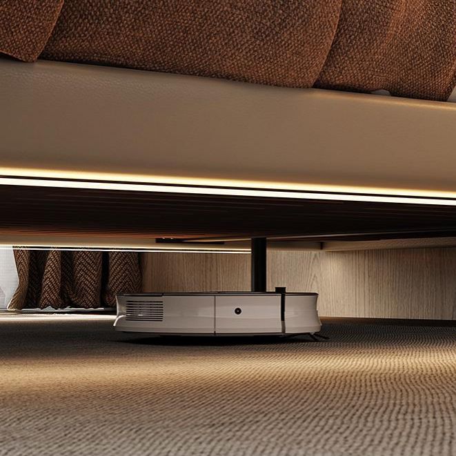 ベージュプラットフォームベッドコンテンポラリープラットフォームベッドフレームウッドと布張り