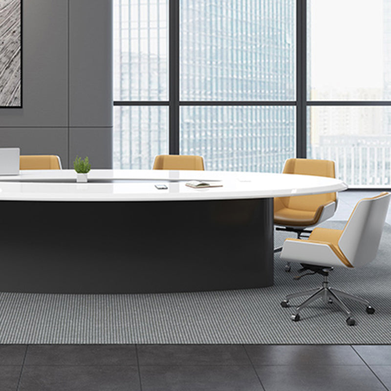 オフィスのための現代の人工木製オフィスデスクオーバルライティングデスク