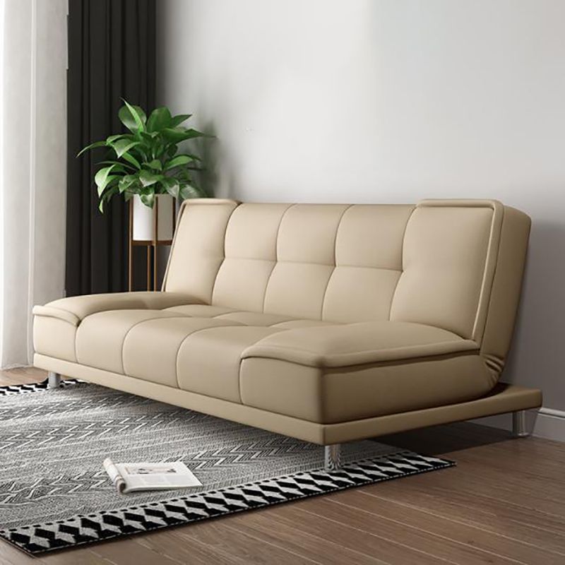 コンテンポラリーコンバーチブルアームレスコットンブレンドとフェイクレザーソファベッド