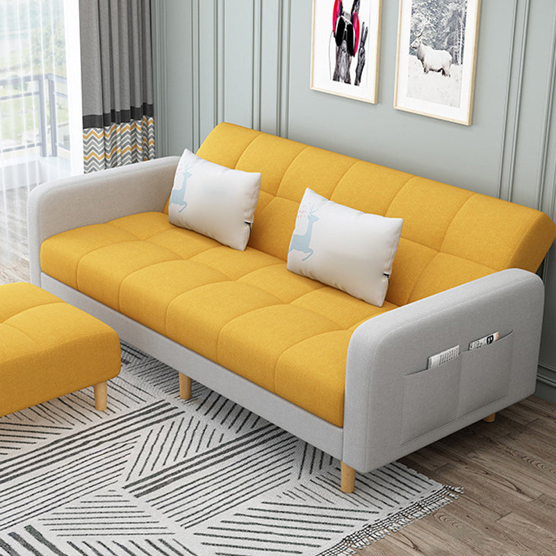 コンテンポラリーフェイクレザーとリネンビスケットバックコンバーチブルセッピーソファ