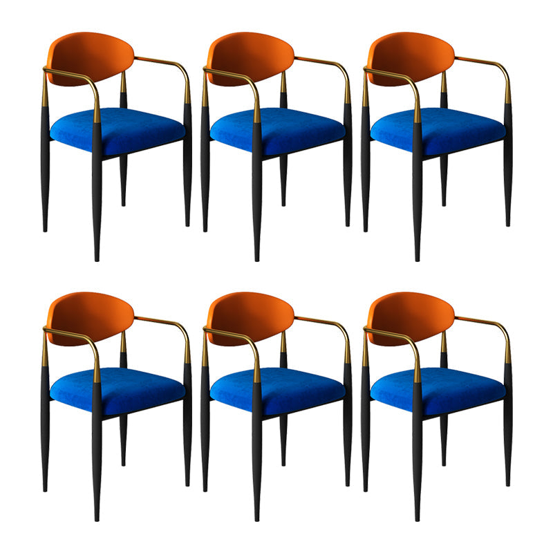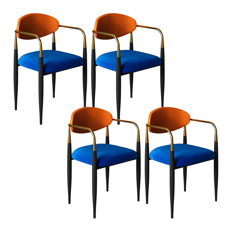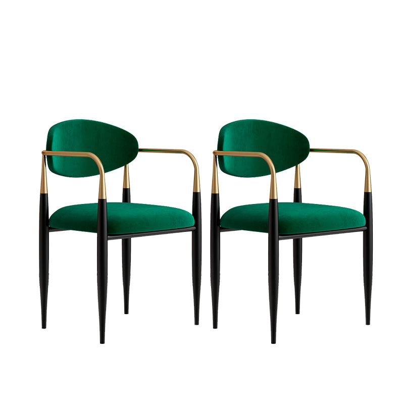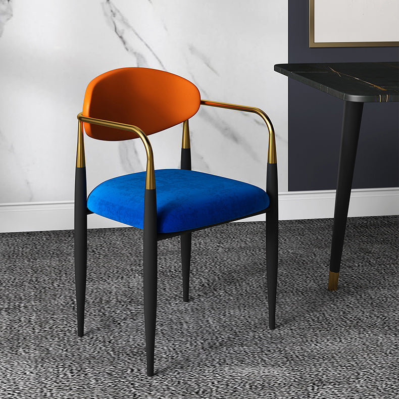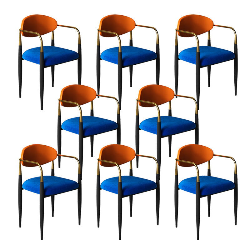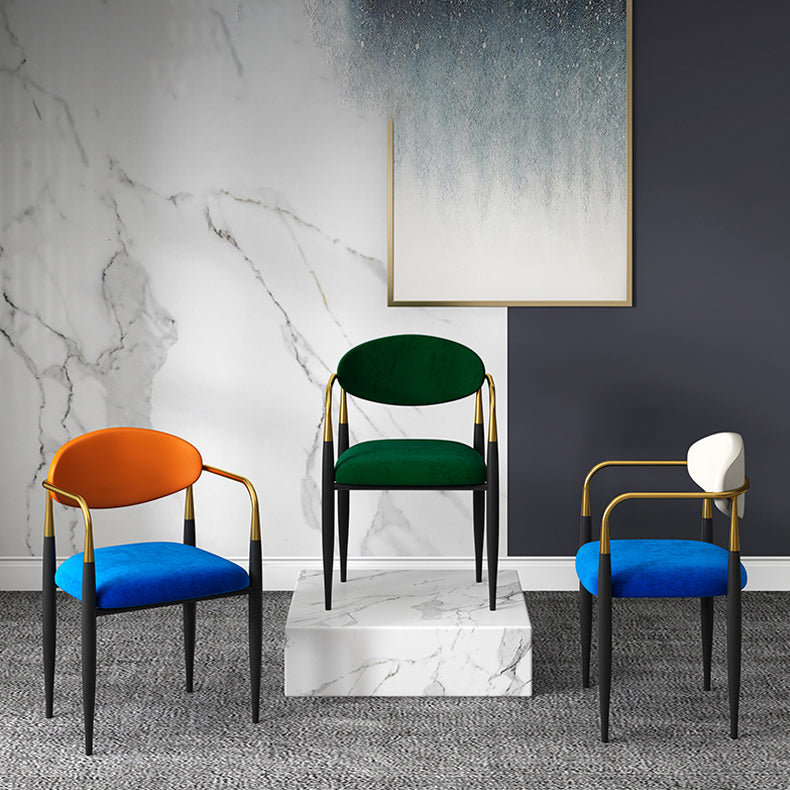現代的なオープンバックダイニングアームチェアメタルフレーム布張り椅子