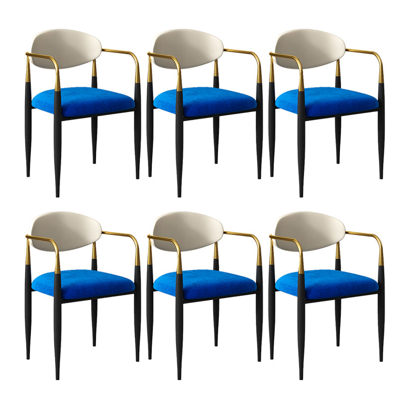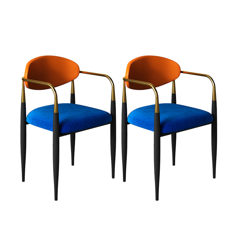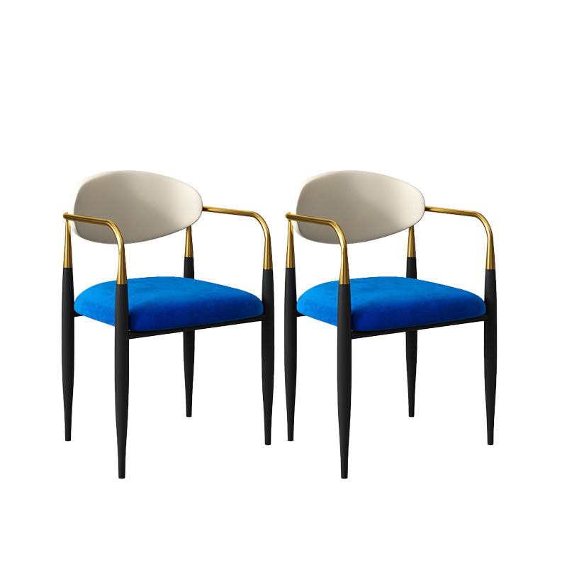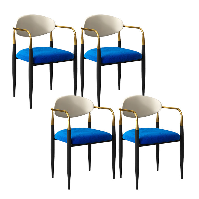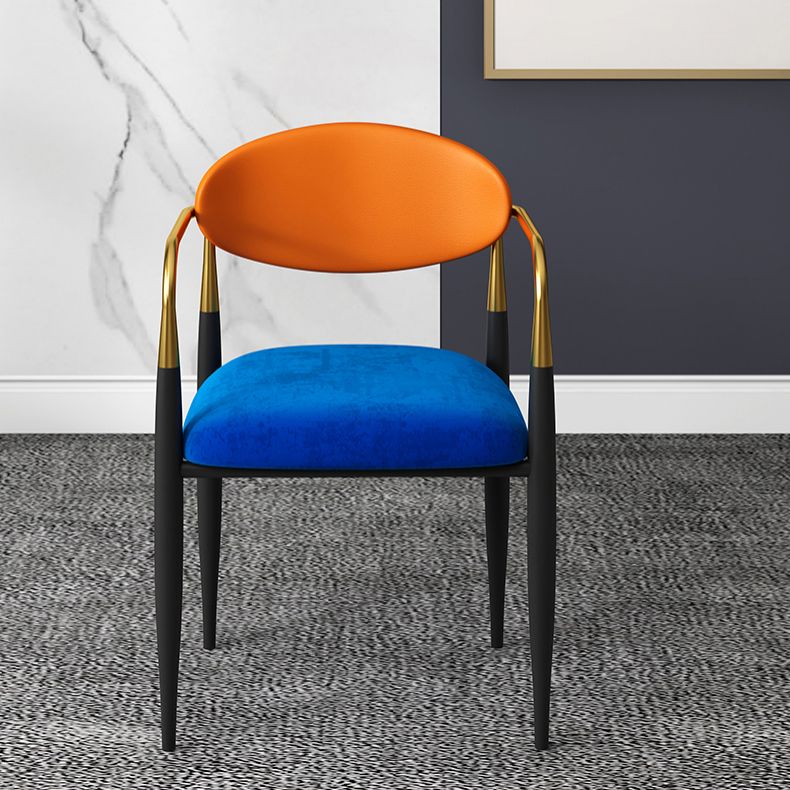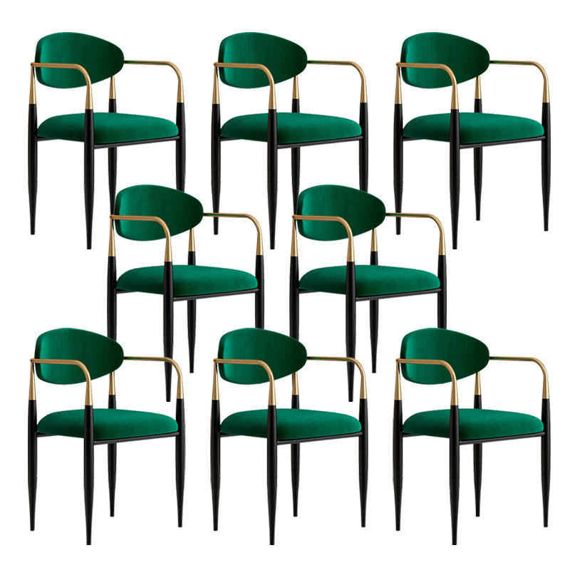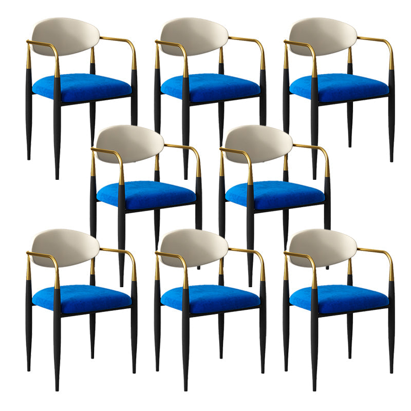 現代的なオープンバックダイニングアームチェアメタルフレーム布張り椅子