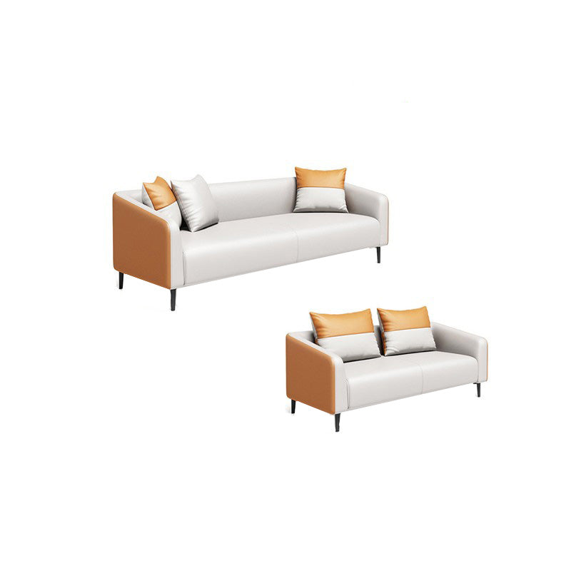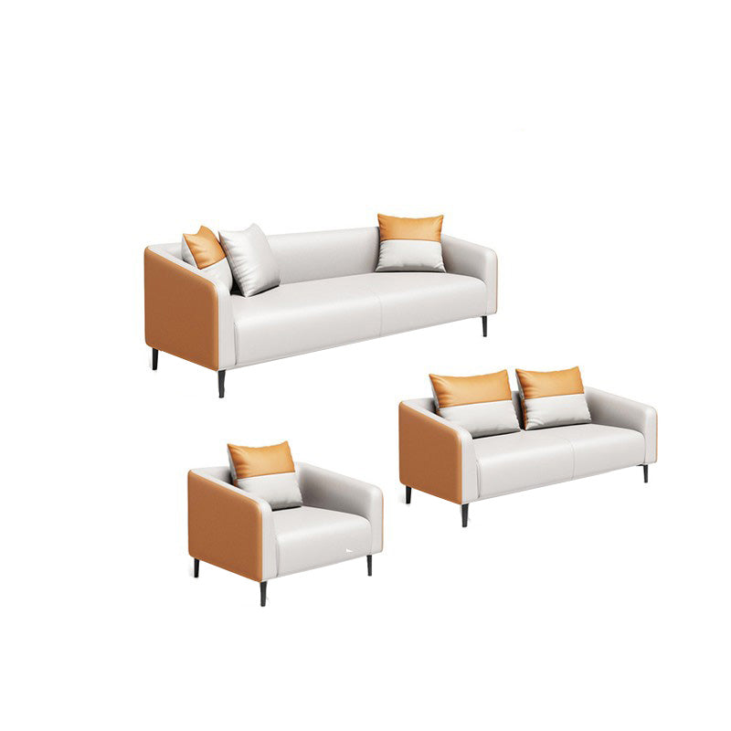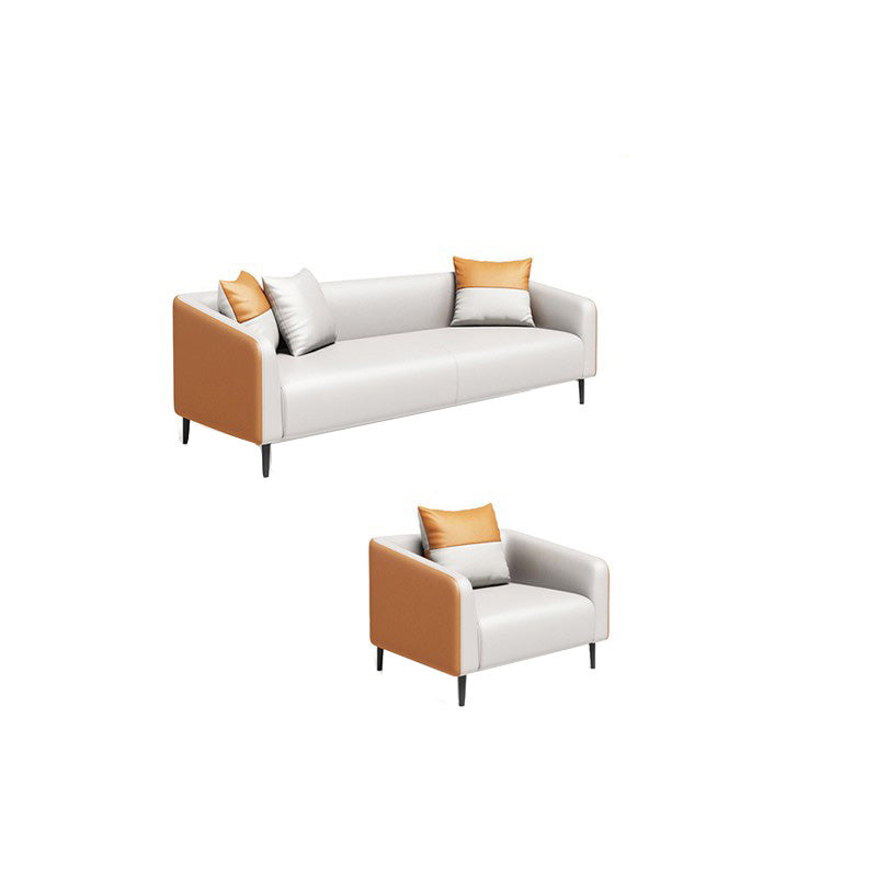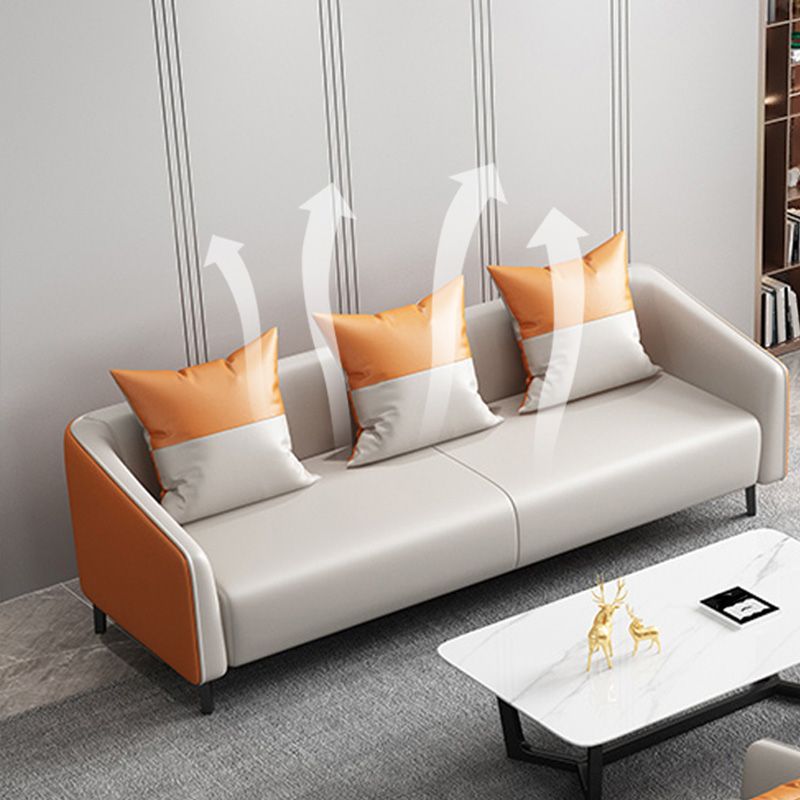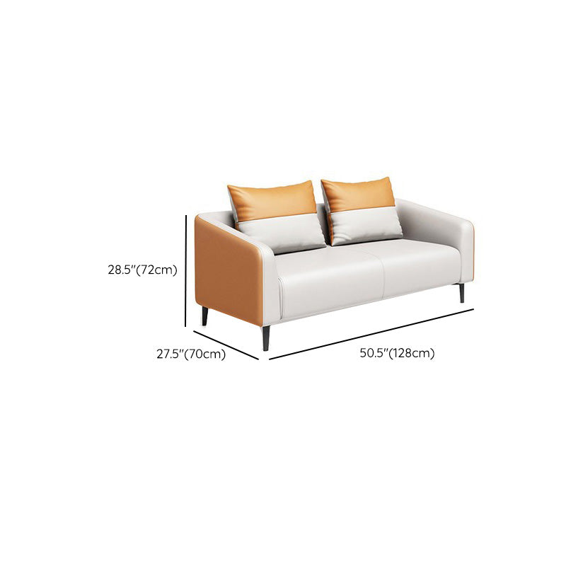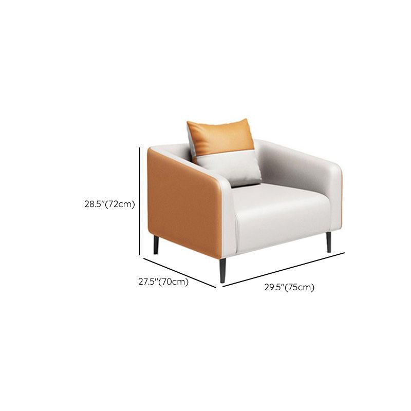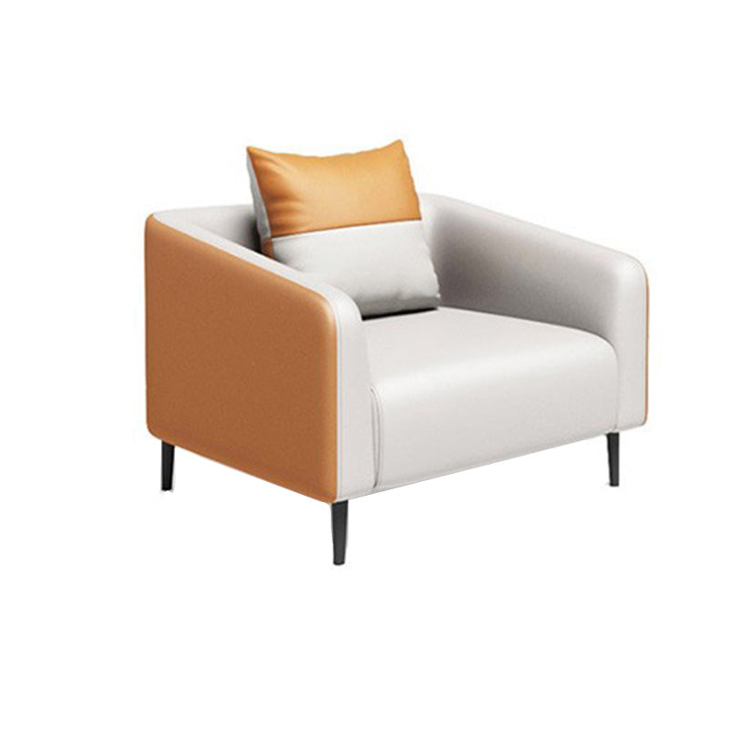 現代オレンジソファフェイクレザータキシードアームソファとアパート用の枕