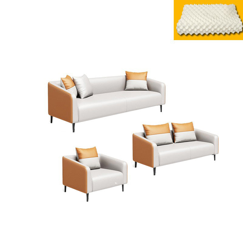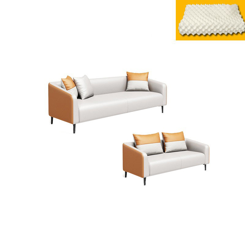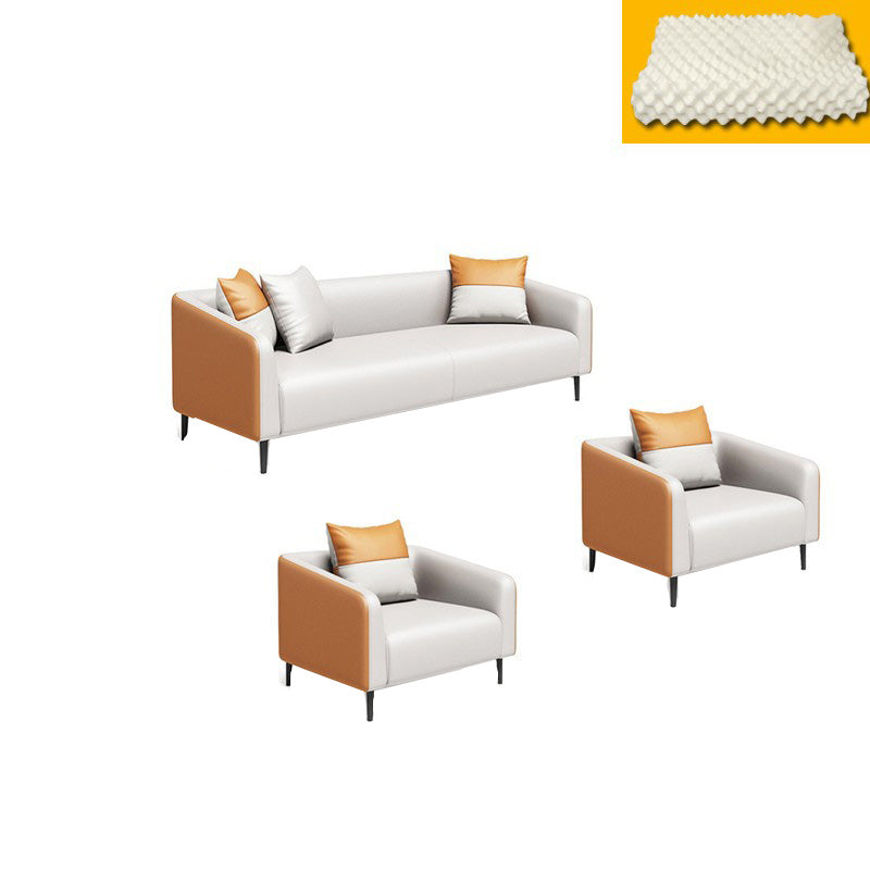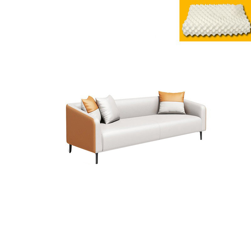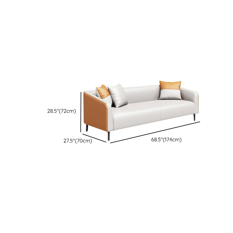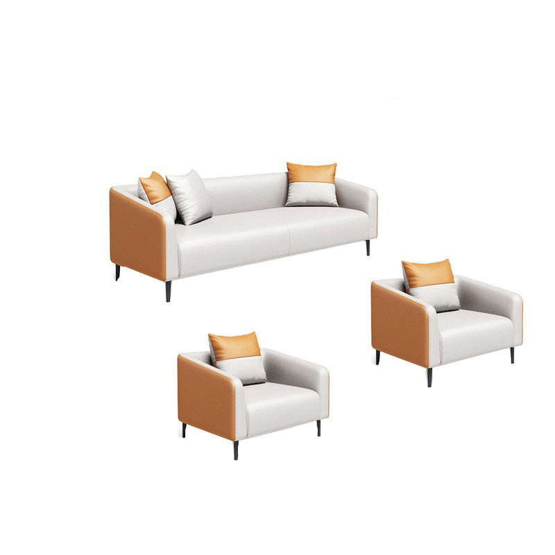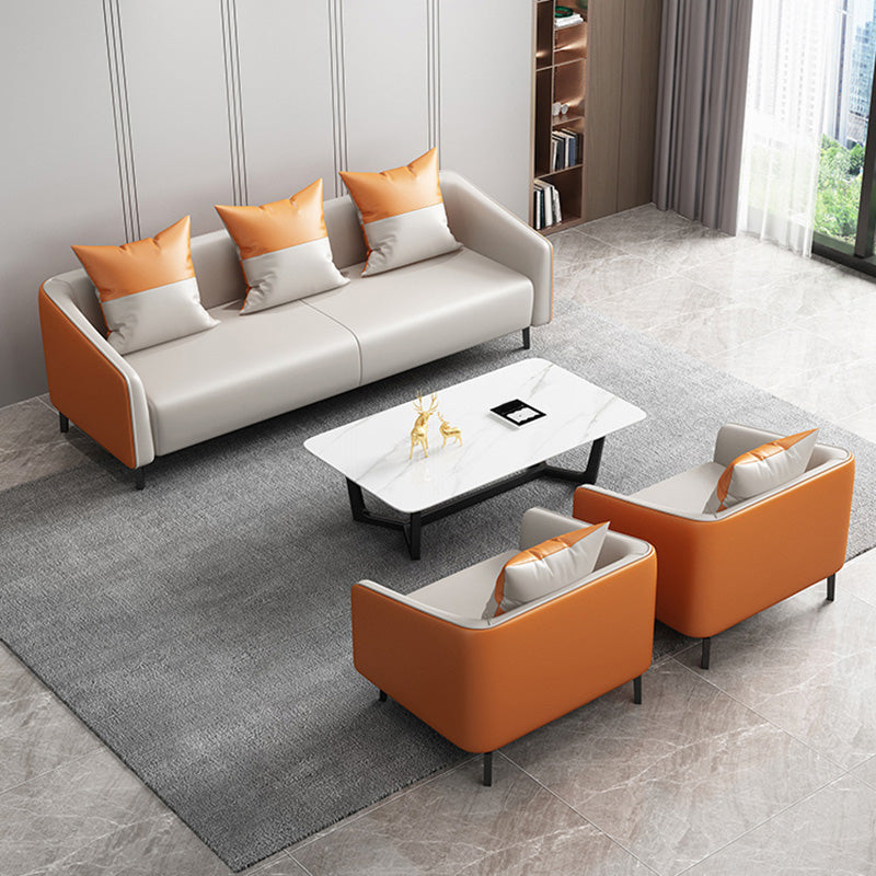 現代オレンジソファフェイクレザータキシードアームソファとアパート用の枕
