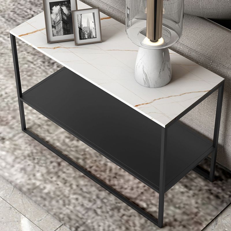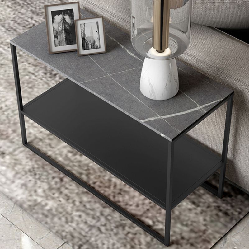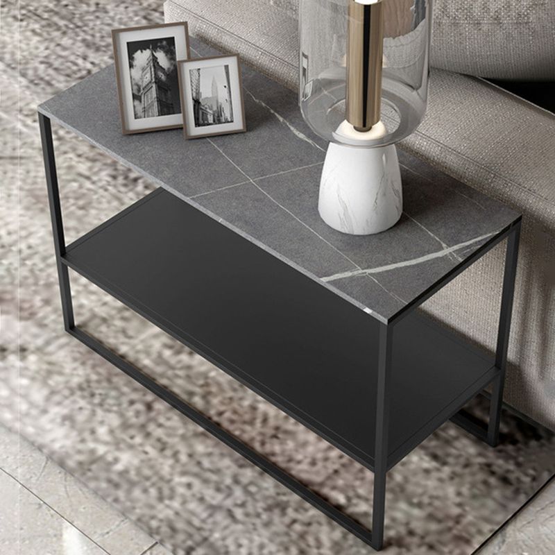 コンテンポラリースレッドエンドテーブルスレート上部長方形のサイドテーブル、21.7 "