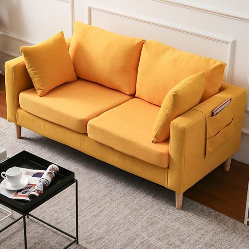 2つの枕を備えた現代ソファスクエアアームリビングルームファブリック座席