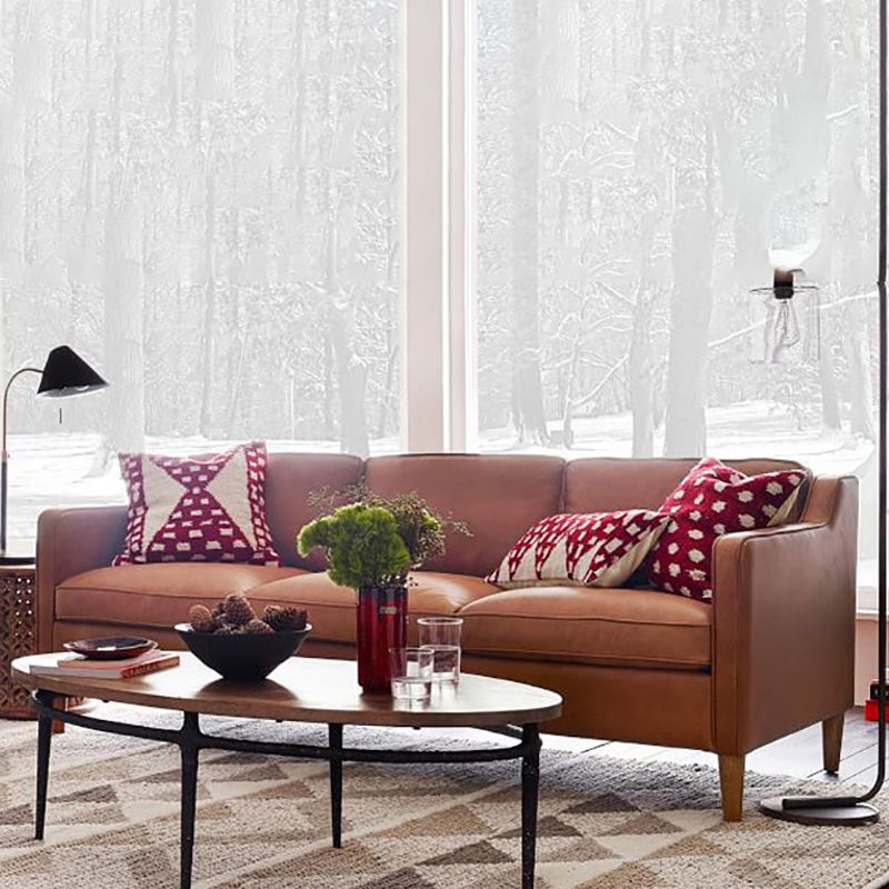 リビングルーム用のボルスター枕の座席付きコンテンポラリースタイルのレザーソファ