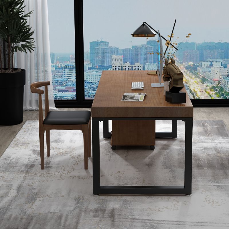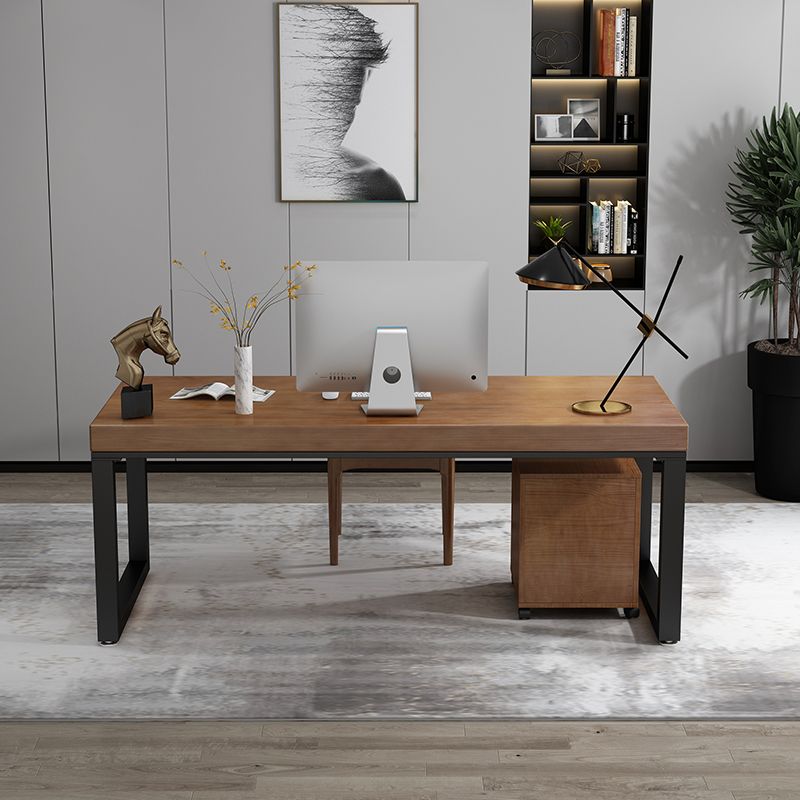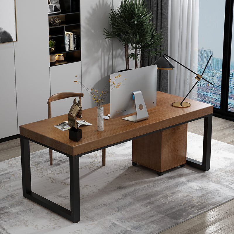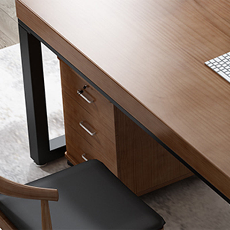 コンテンポラリースタイルの木製オフィスデスクブラウンの長方形の形状タスクデスク