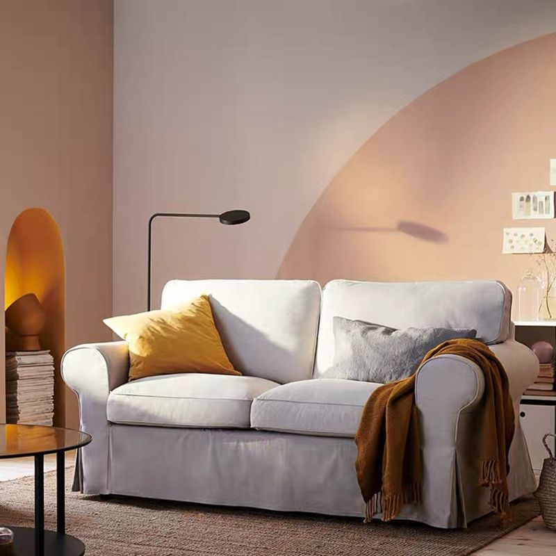 コンテンポラリーホワイトクッション標準ロールアーム2シーターソファ