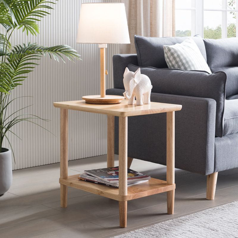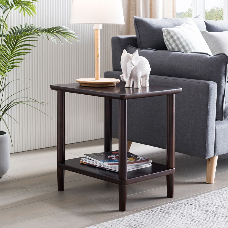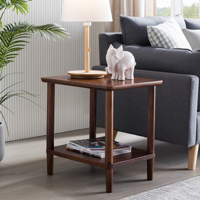 現代の木製エンドテーブル長方形の4脚サイドテーブルストレージシェルフ