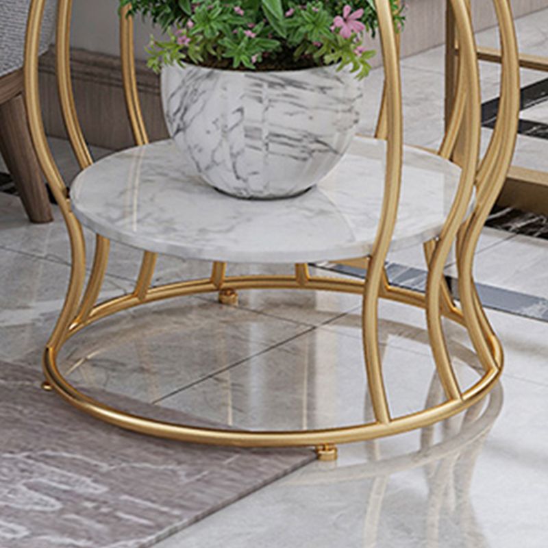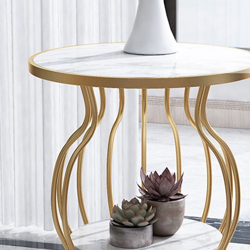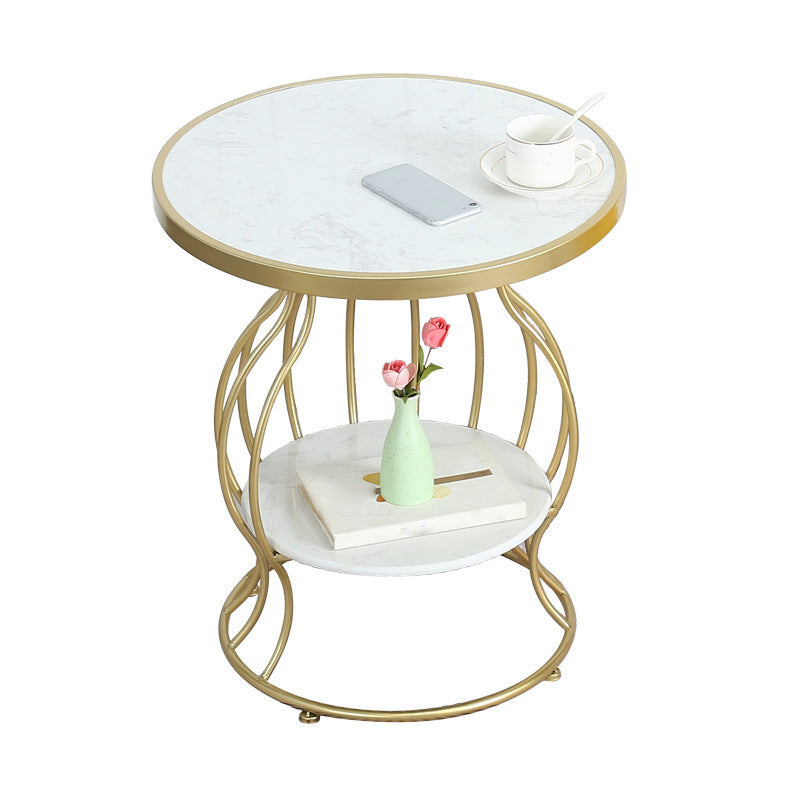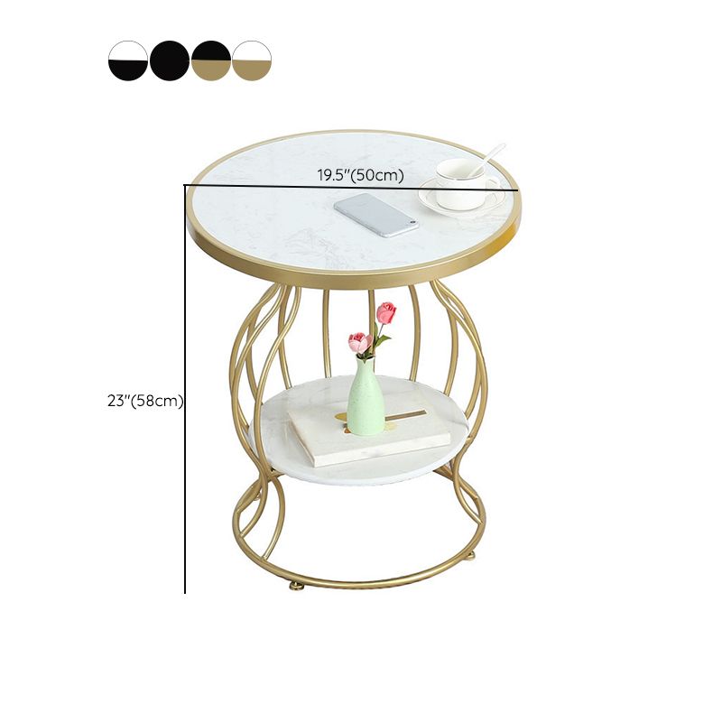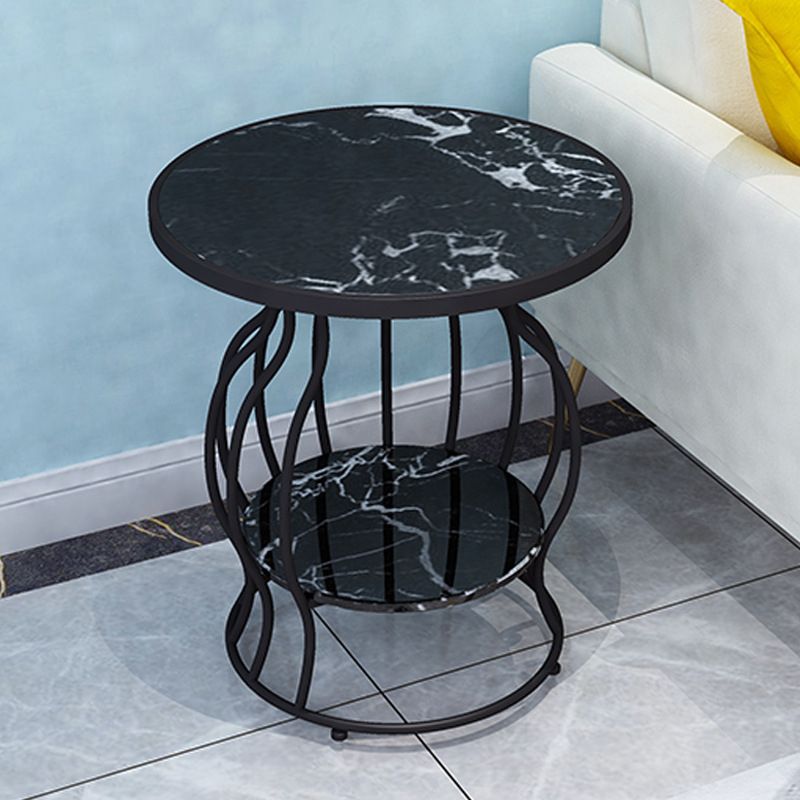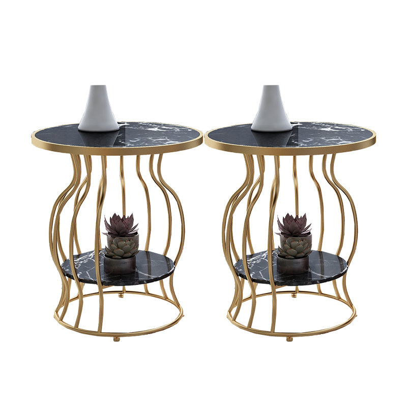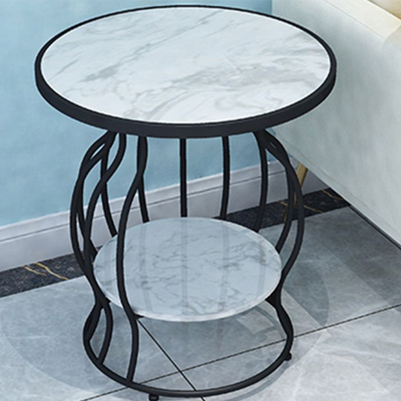 ダブルティアエンドテーブルストレージシェルフ付きモダニストスレートサイドテーブル