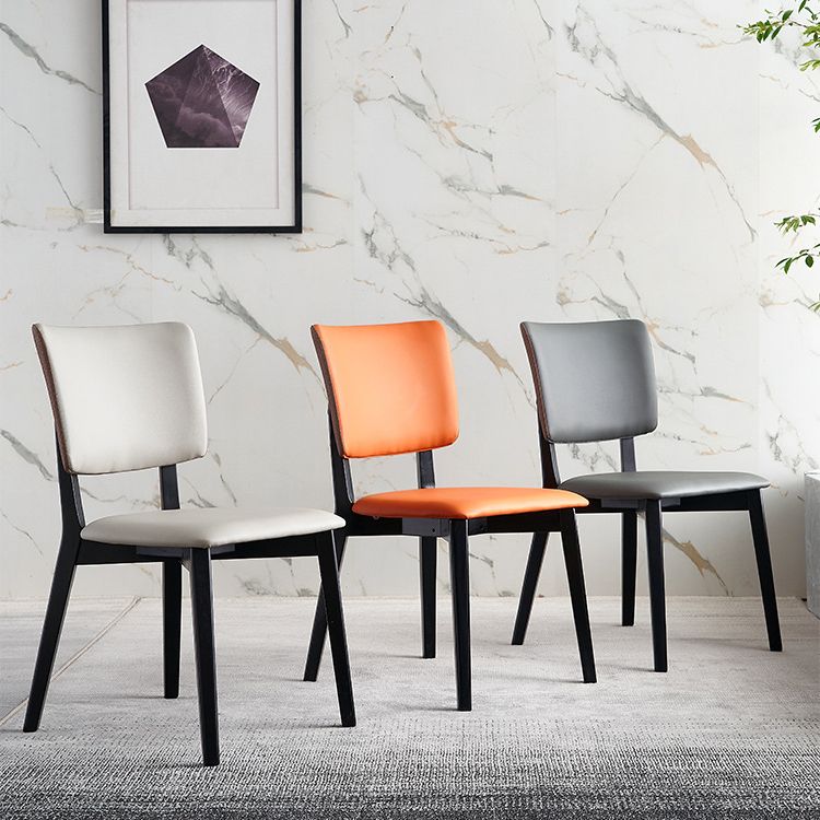フェイクレザーキッチンダイニングチェアウッドベースの布張りのサイドチェア