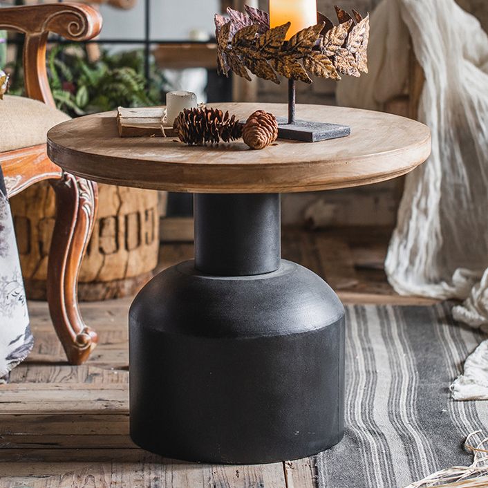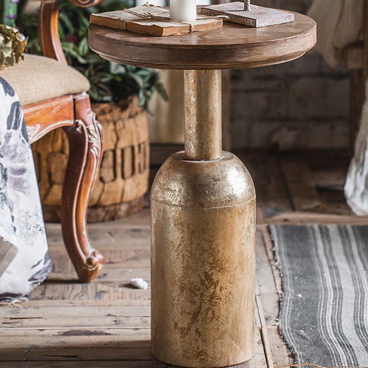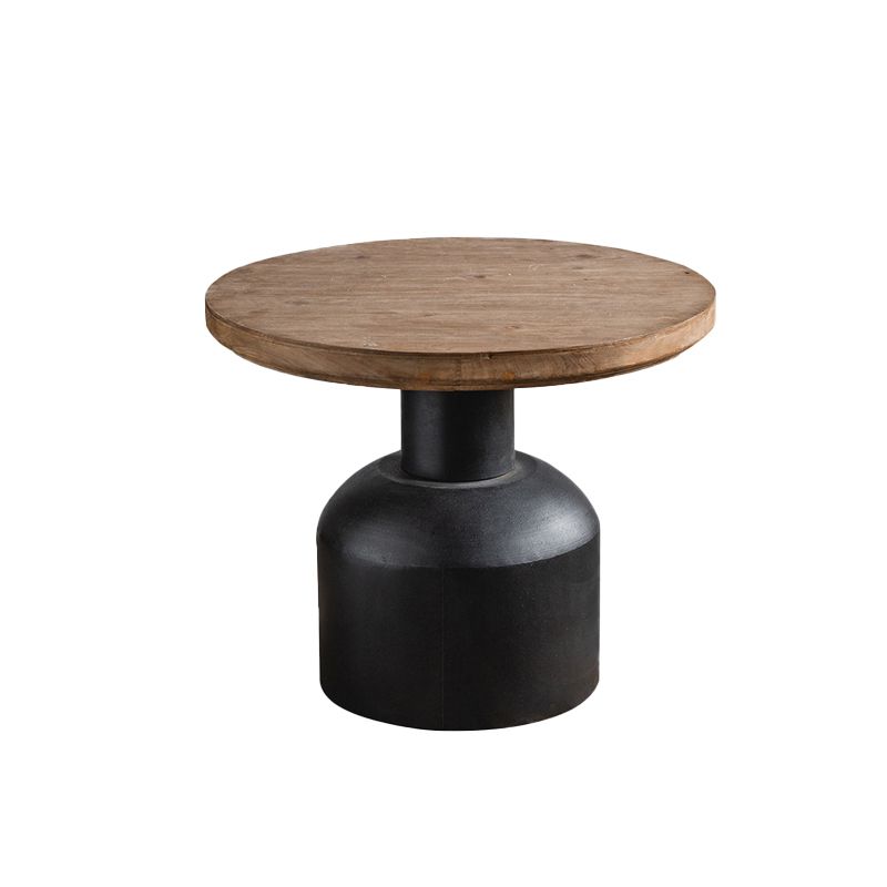 フランスのカントリーウッドラウンドトップサイドテーブル鉄台座エンドテーブル