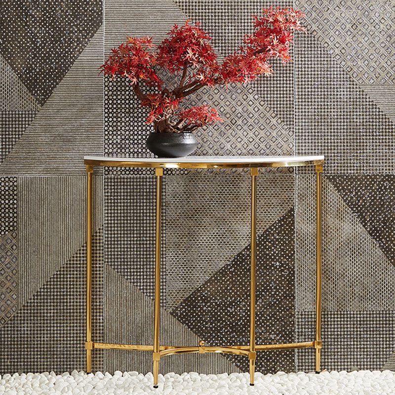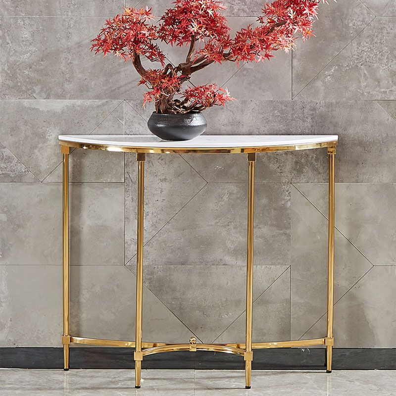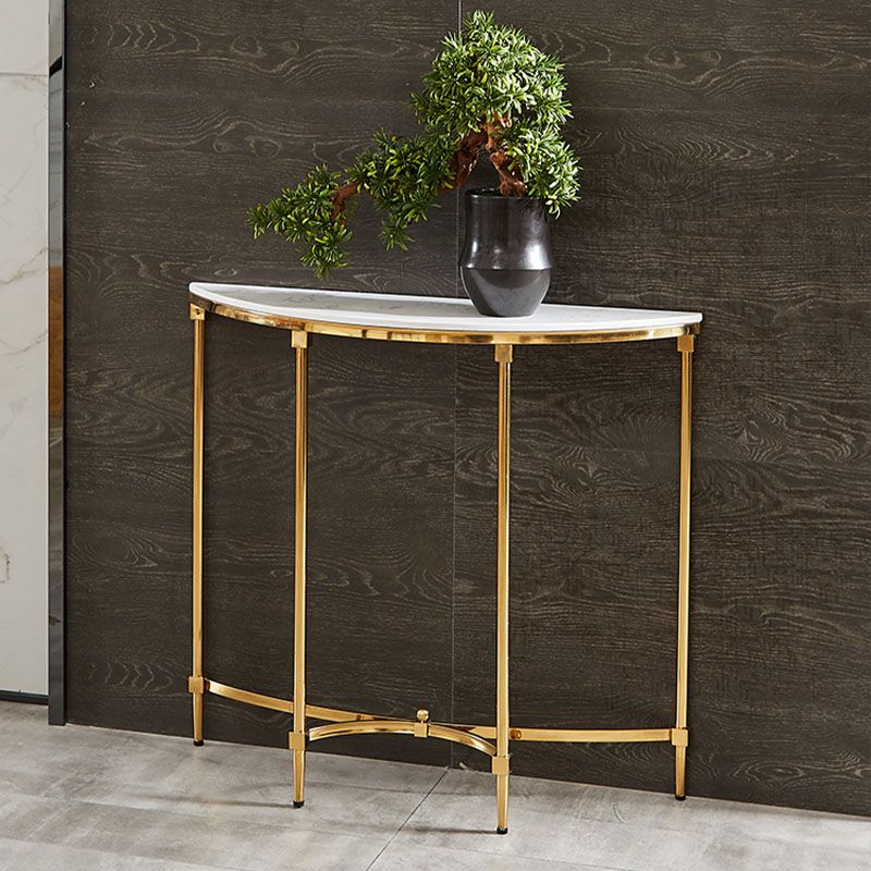 グラム大理石コンソール表14 "wハーフムーン4脚アクセントテーブル