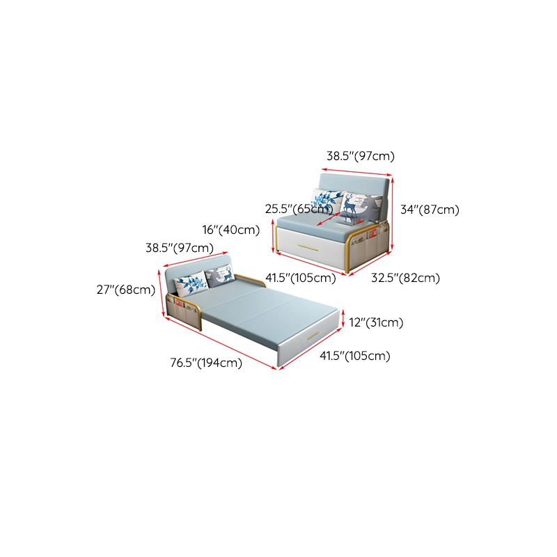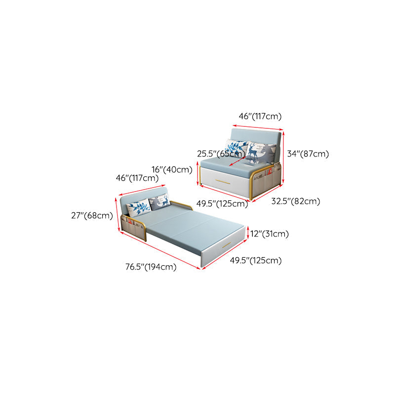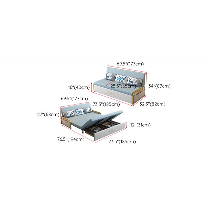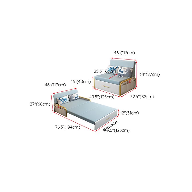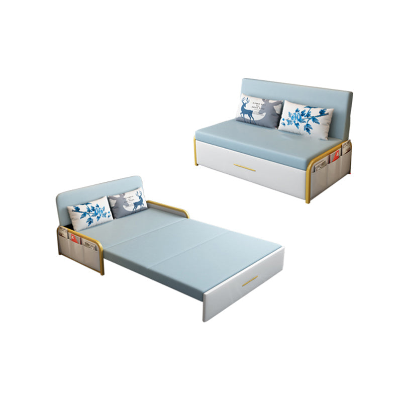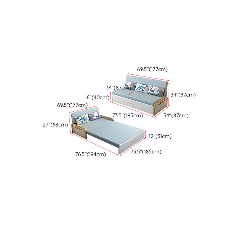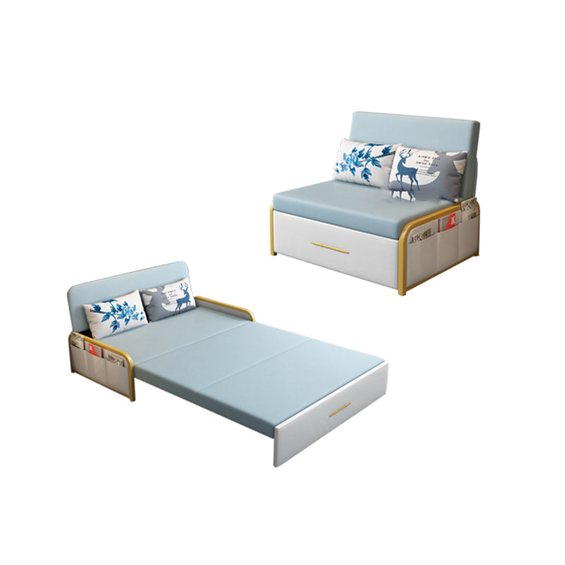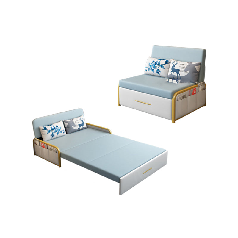 グラムラウンドアーム布団フレームボンドレザーブルースリーパーソファ