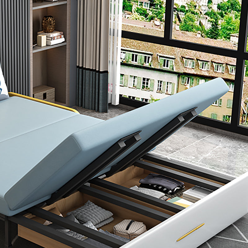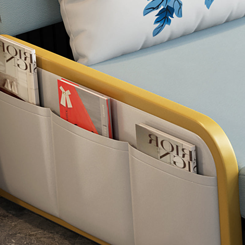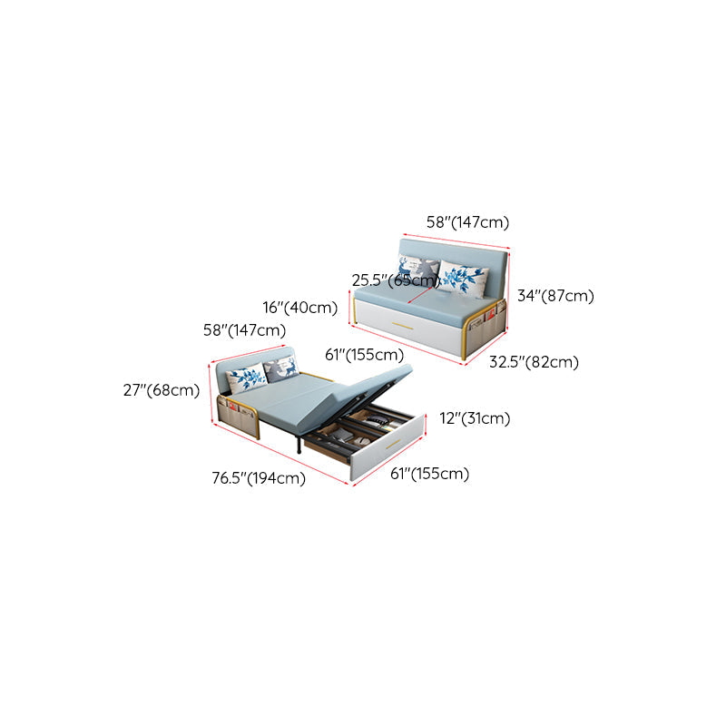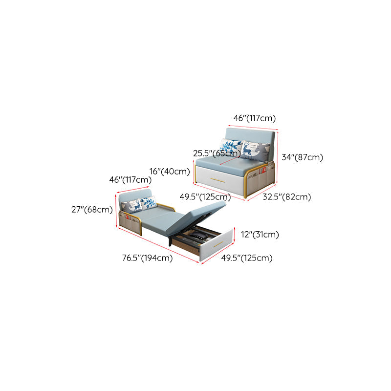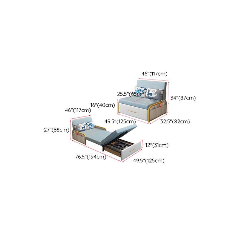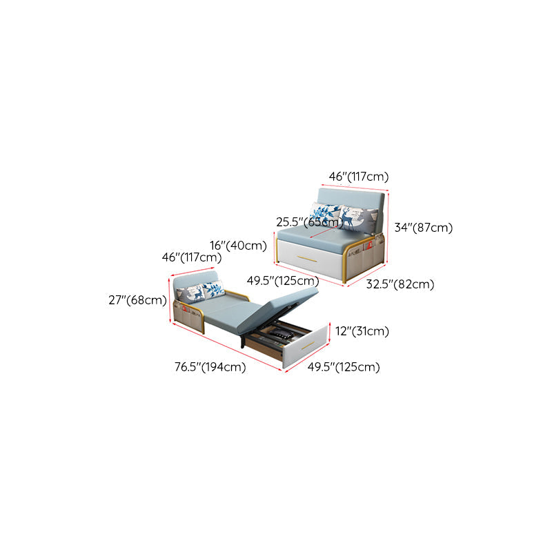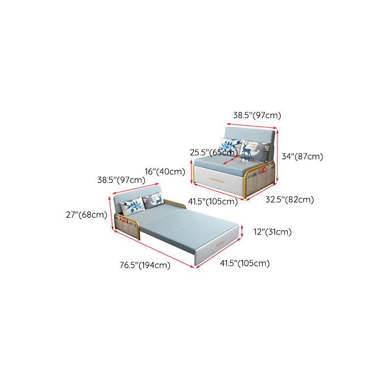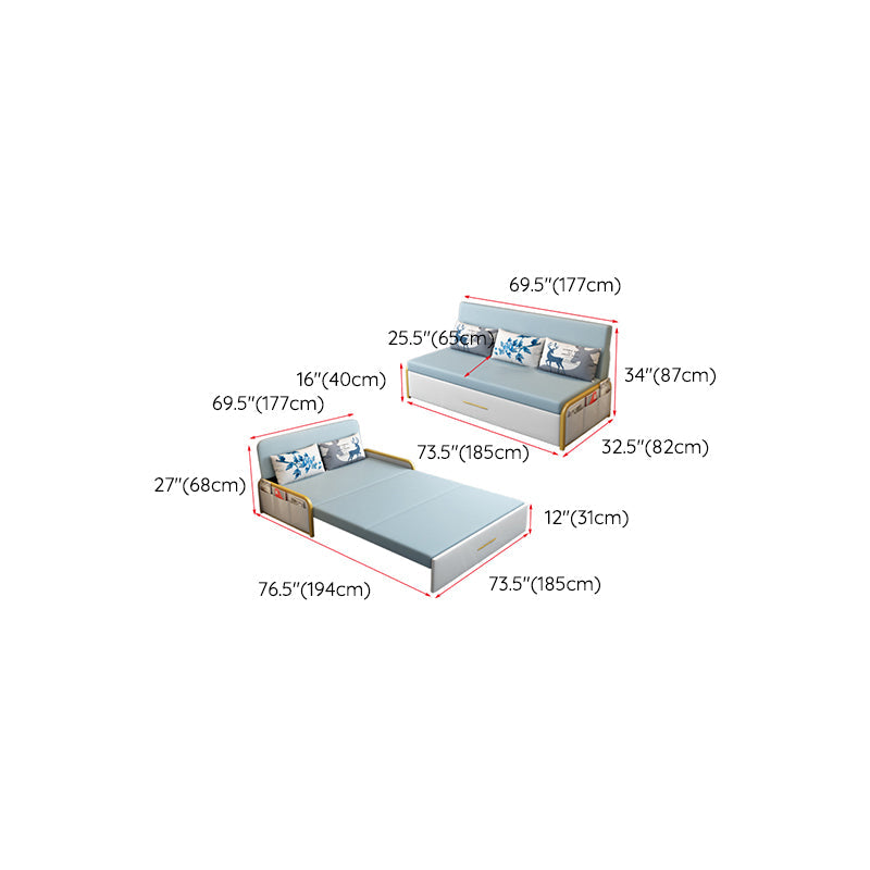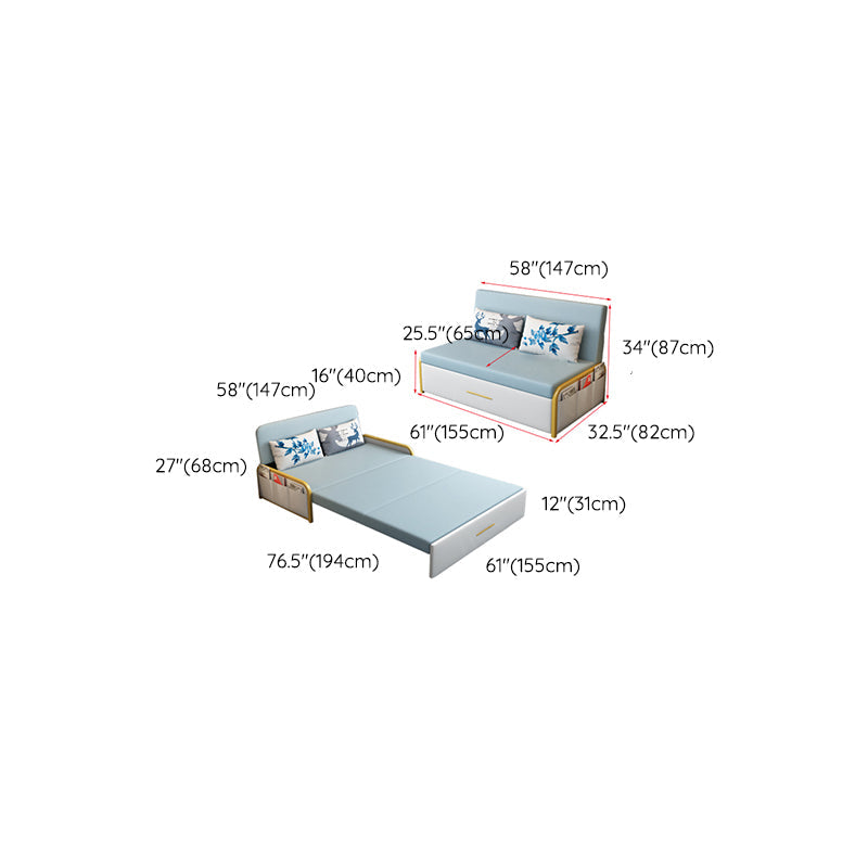 グラムラウンドアーム布団フレームボンドレザーブルースリーパーソファ