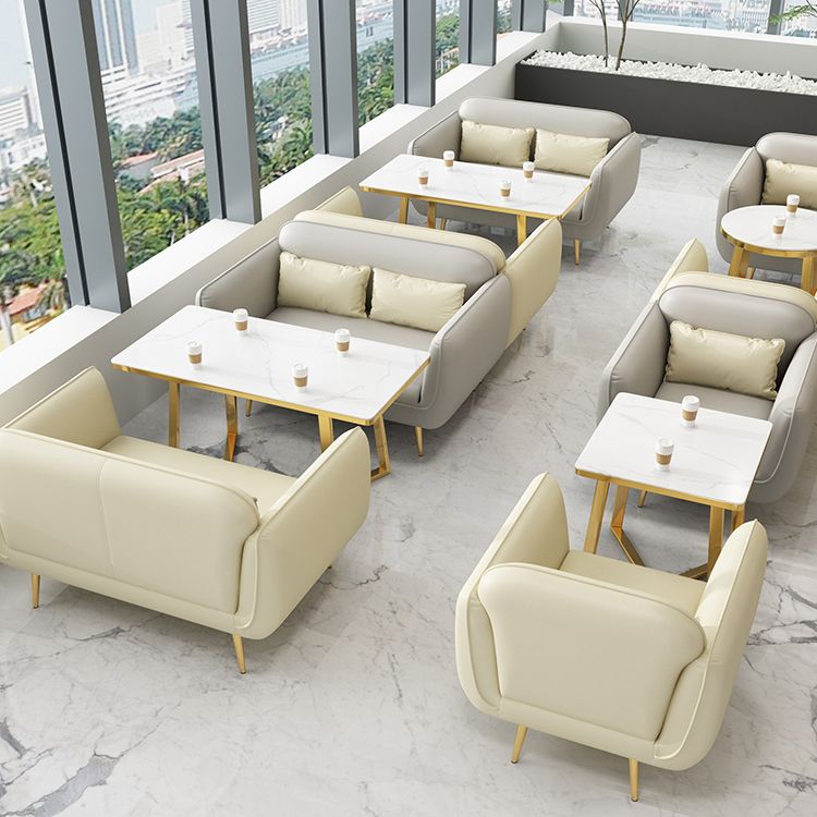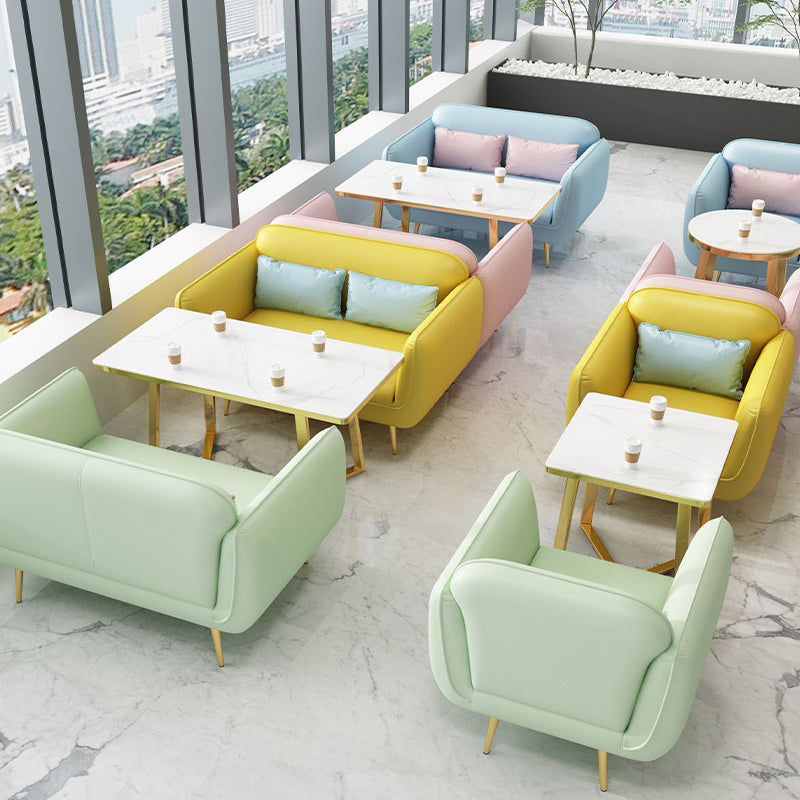 グラム静止フェイクレザースクエアアームリビングルームステイン耐性ソファ