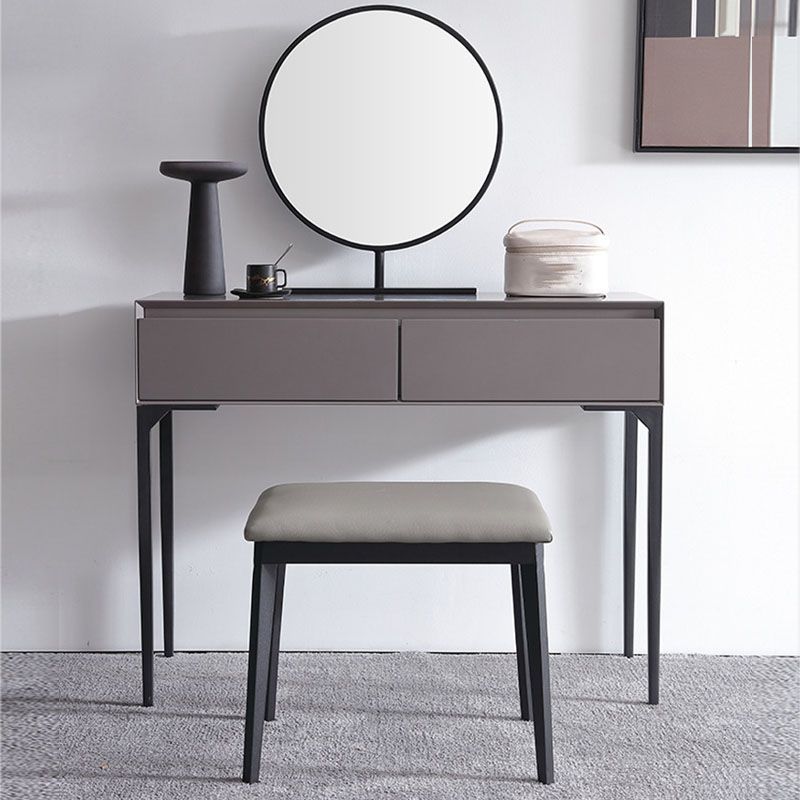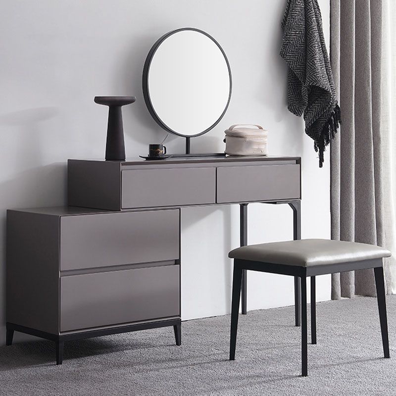 鏡と引き出しを備えた灰色の木製の虚栄心の虚栄心
