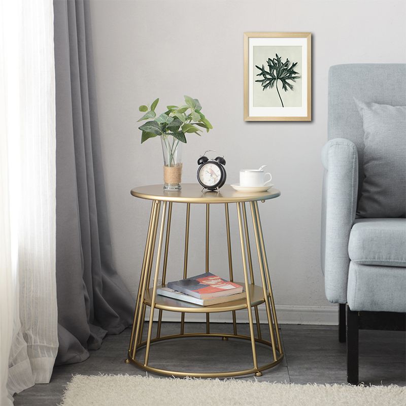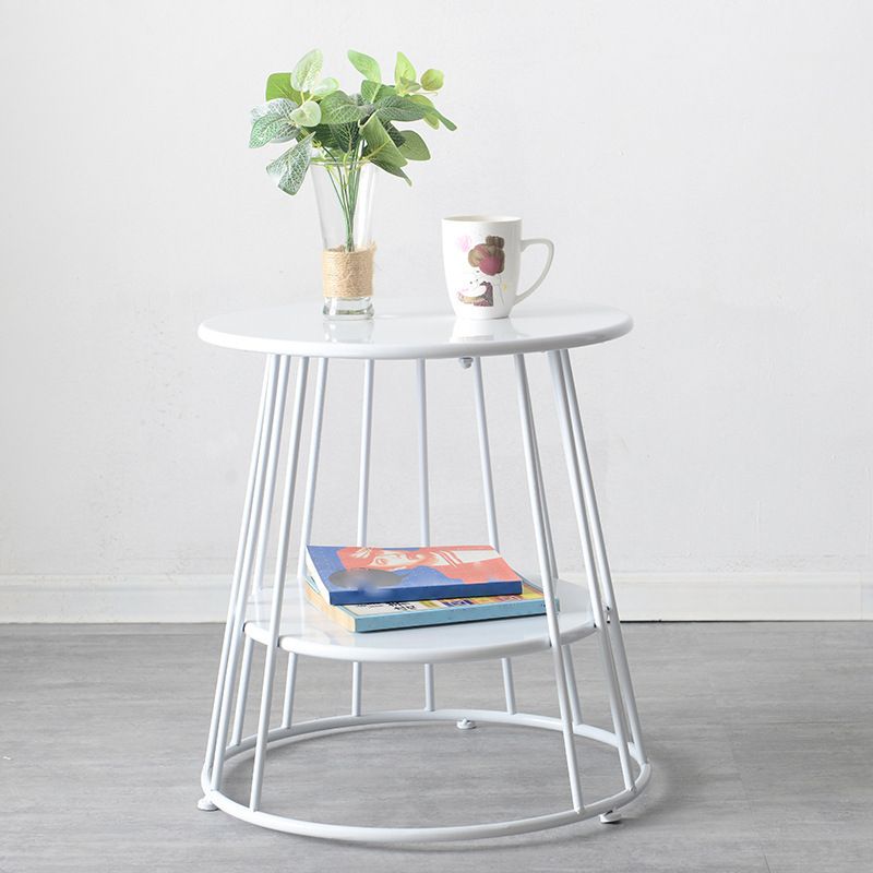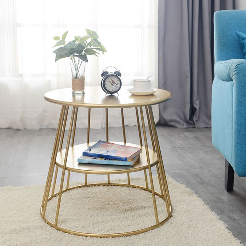 中世のモダンメタルテーブルラウンドトップフレームベースサイドテーブル付き棚