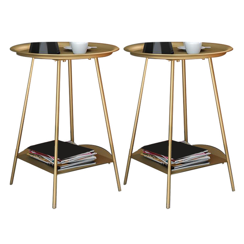 棚付きダブルティアリビングルームエンドテーブルを備えたミッドセンチュリーメタル4脚