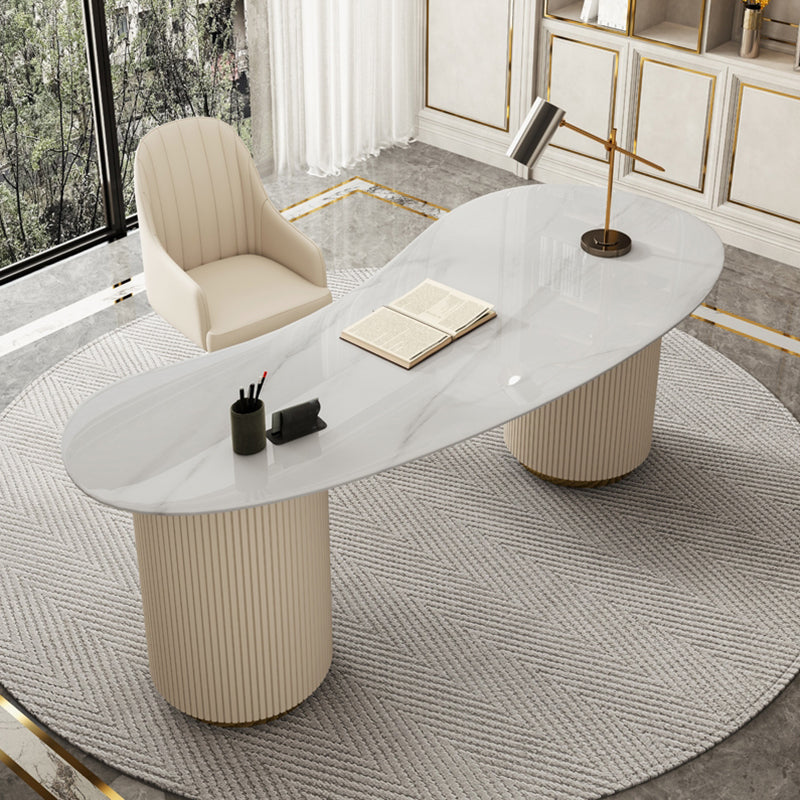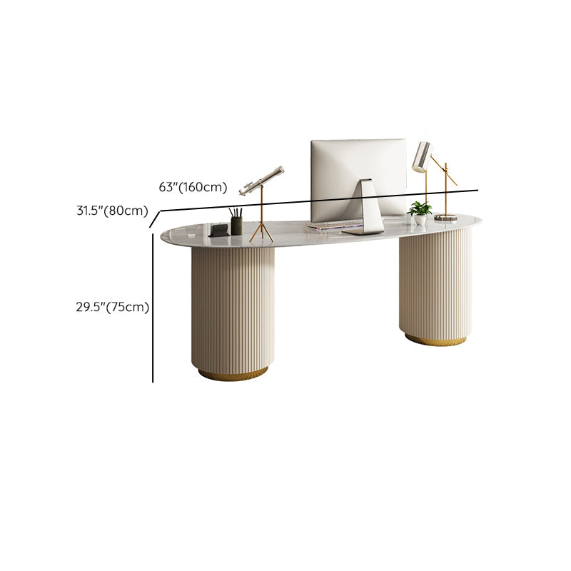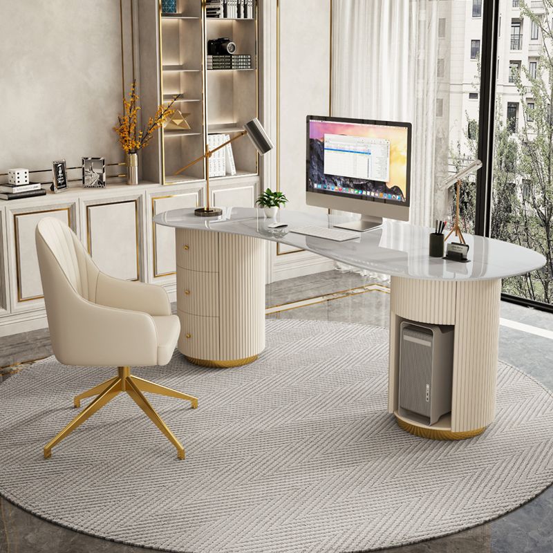 モダンな3引き出しオフィスデスクストーン29.53 "背の高い白いライティングデスク