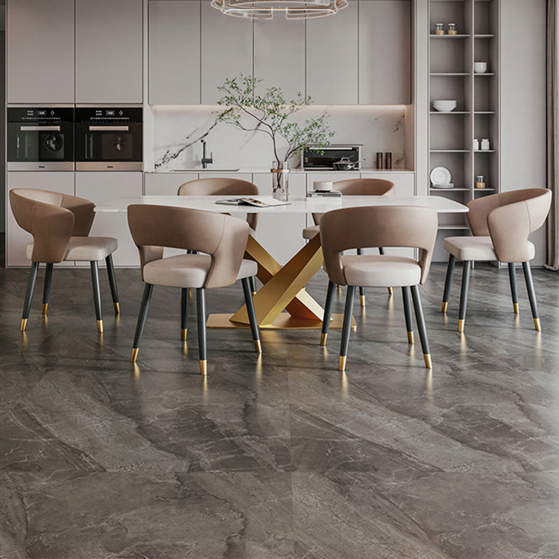 モダンなアームチェアフェイクレザー屋内のダイニングルームチェア