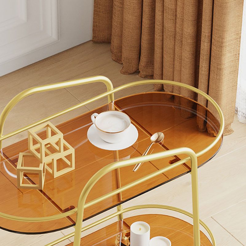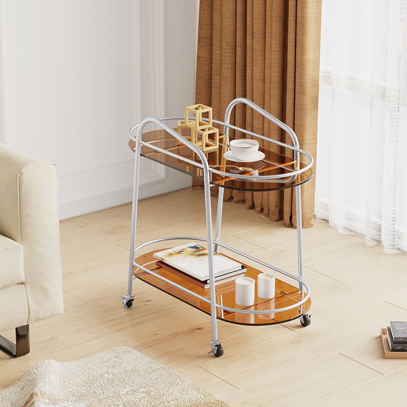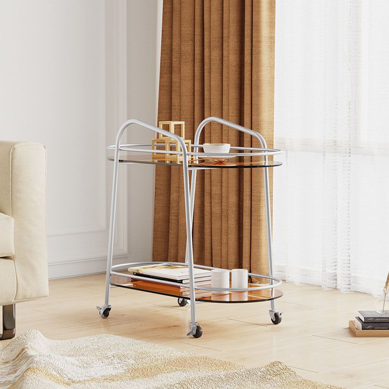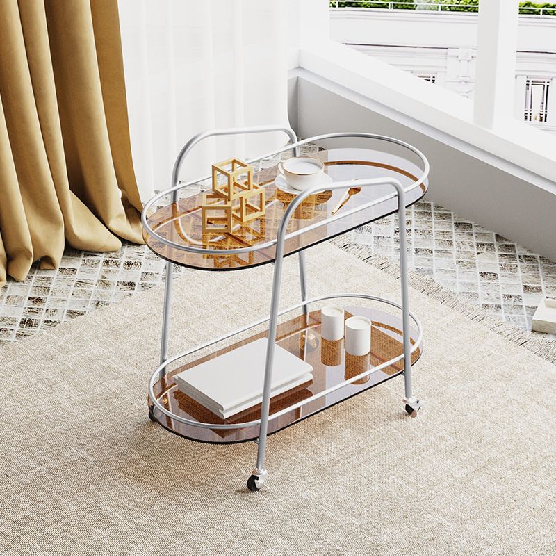 棚と車輪付きのモダンな楕円形のガラスサイドテーブルエンドテーブルメタルベースサイドテーブル